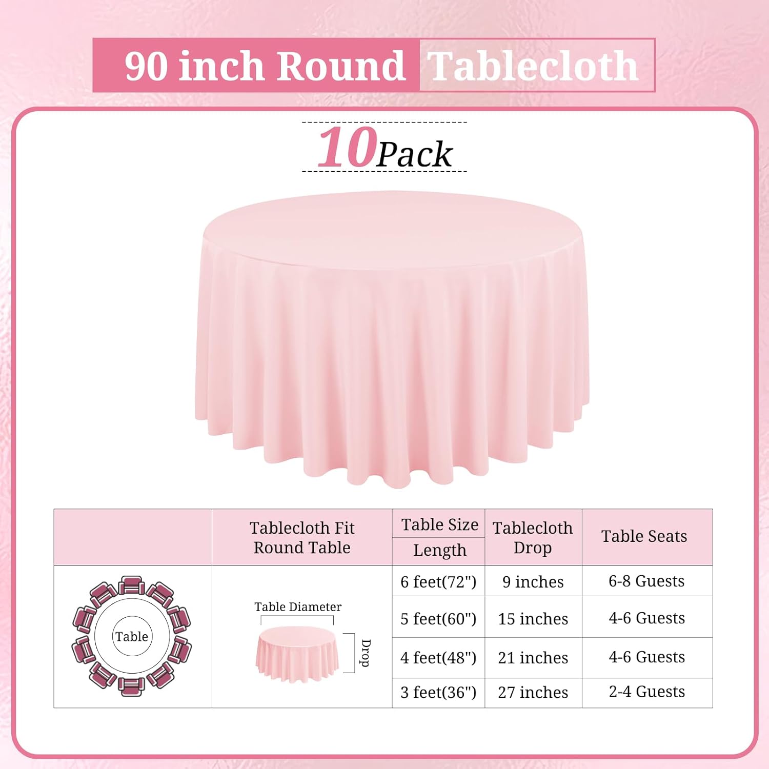 10 Pack Pink Round Tablecloths - 90 Inch, Polyester Table Cover, Stain and Wrinkle Resistant Washable Fabric, Perfect for Wedding Banquet Parties
