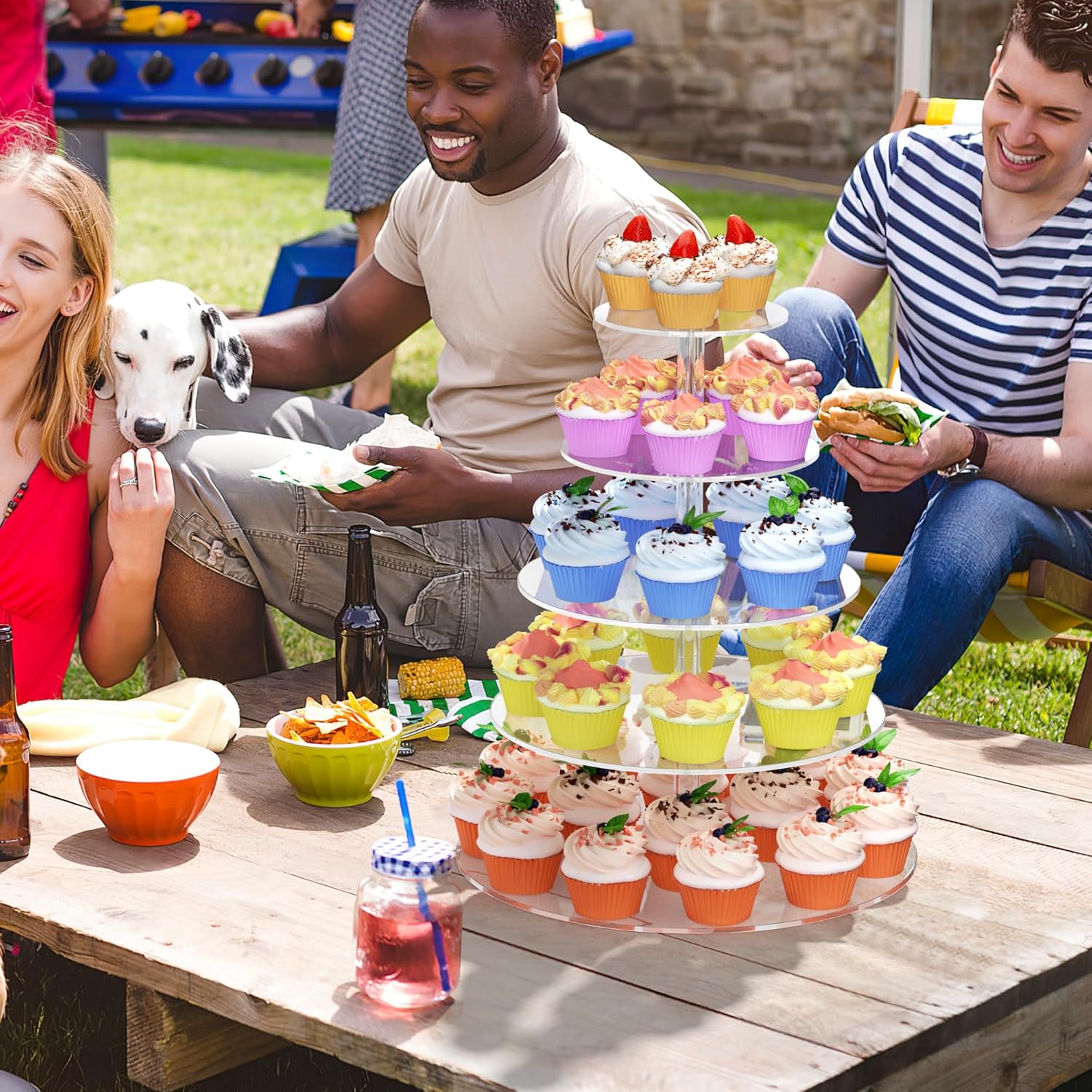 • MULTIFUNCTIONAL DESIGN: Our tiered cupcake stand has a removable design, easy to organize and does not take up storage space. Each tier of acrylic plates can be freely combined to form different tiers of cupcake stands.