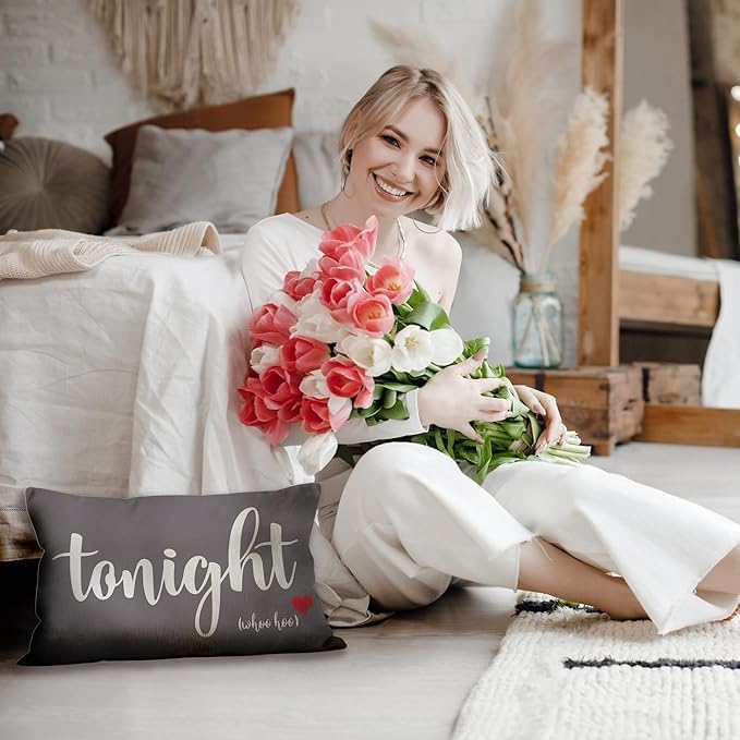 • Dual-sided Design: Enjoy the versatility of two charming patterns โ€“ "Tonight" and "Not Tonight." Playfully set the mood by flipping the pillow to match your desires, adding a touch of fun to your bedroom or sofa.