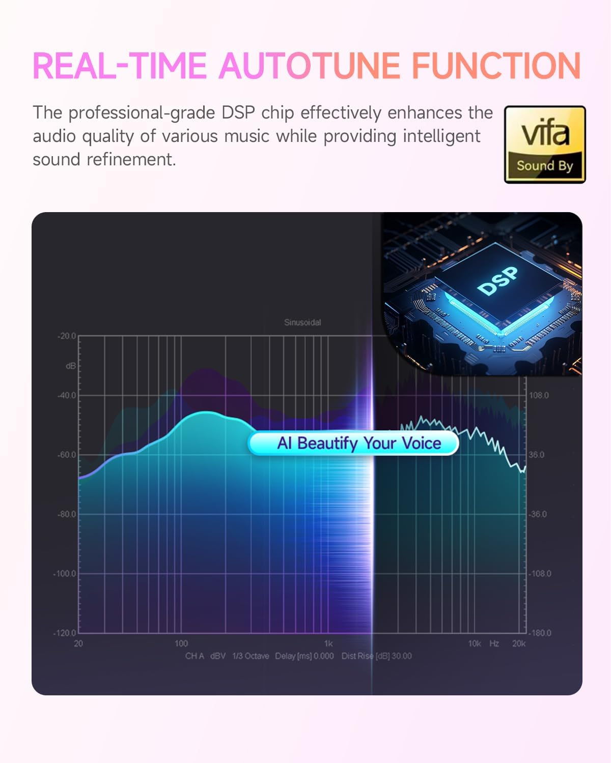 • 【Sound by Vifa Danish Century-Old Brand】The wireless Bluetooth karaoke microphone from the renowned Danish brand Vifa combines advanced DSP sound chip and audio processing by Vifa for exceptional sound quality. With dual 8W speakers, it delivers powerful and warm sound with remarkable clarity. The one-click vocal elimination function removes the vocals from songs and transforms them into instrumental tracks, creating an ideal music concert atmosphere. It is not only a karaoke microphone but also a high-fidelity audio speaker.