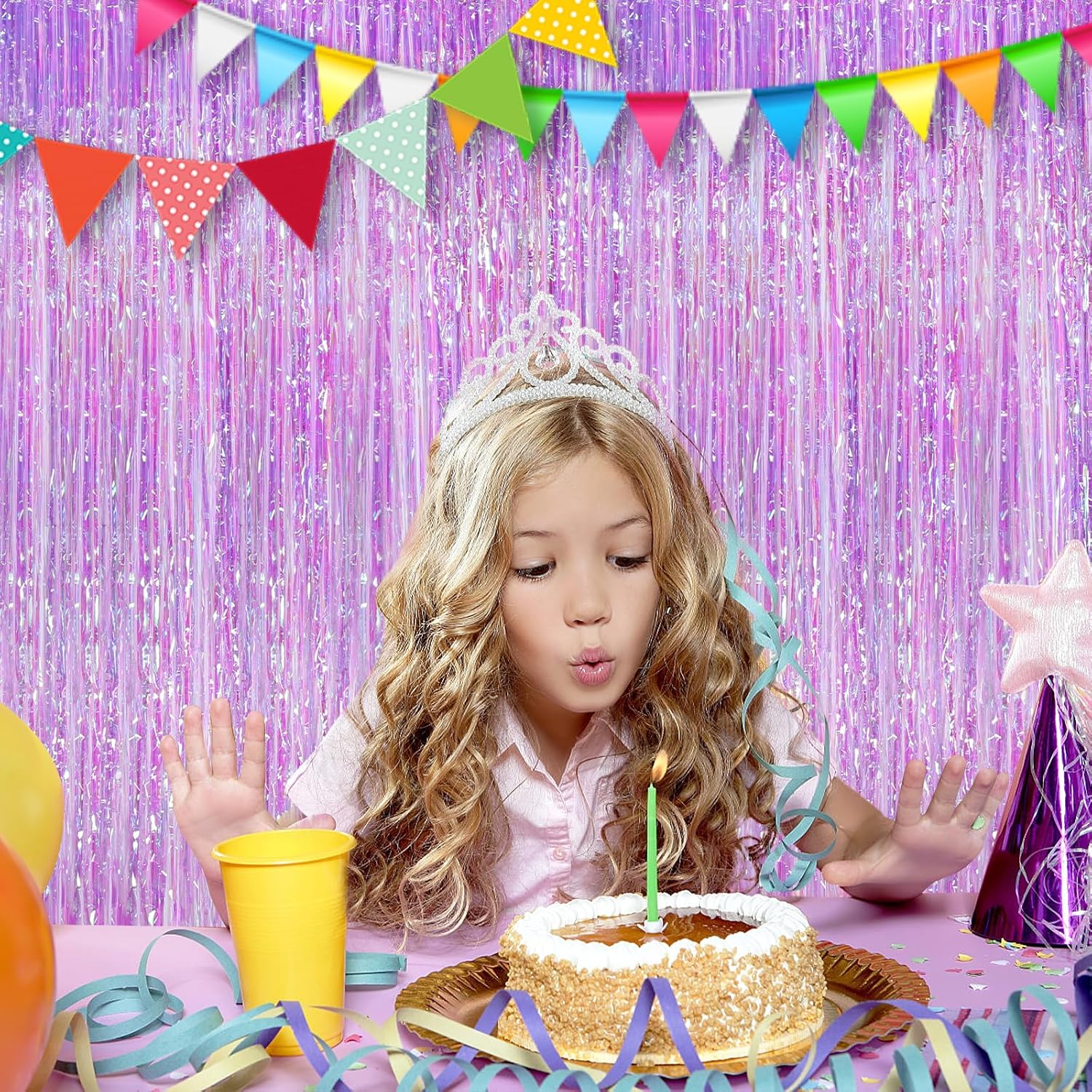 2Pack 3.3 x 8.3Ft Iridescent Purple Streamers Foil Fringe Curtains Neno Purple Tinsel Door Curtains Photo Booth Backdrop for Wedding Birthday Bridal Shower Baby Shower Bachelorette Party Decors