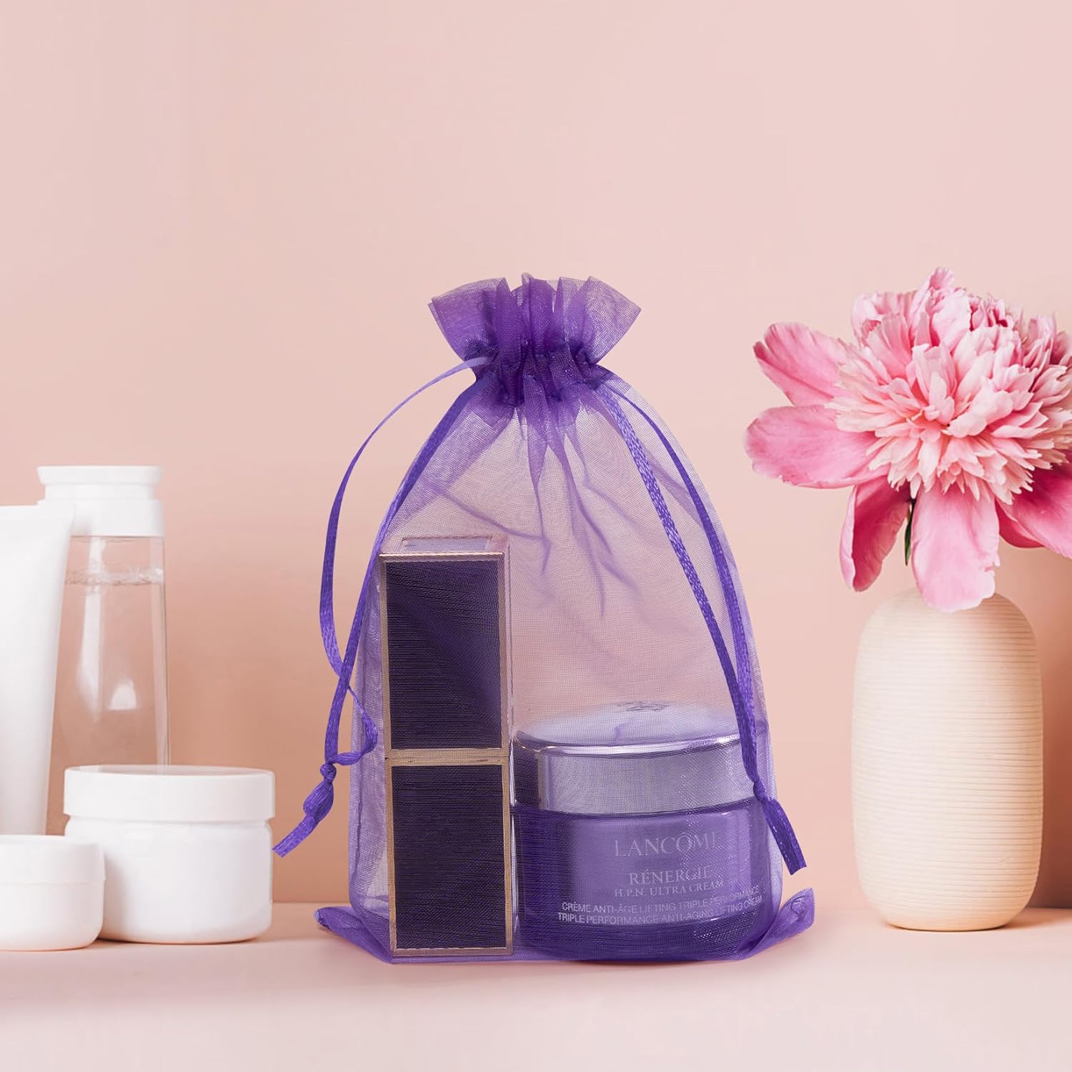 Organza Bags 50 Packs 3x4 Inch, Elegant Small Mesh Gift Pouches, Sachet Jewelry Bags Drawstring for Halloween Treat Party Favor (Purple)