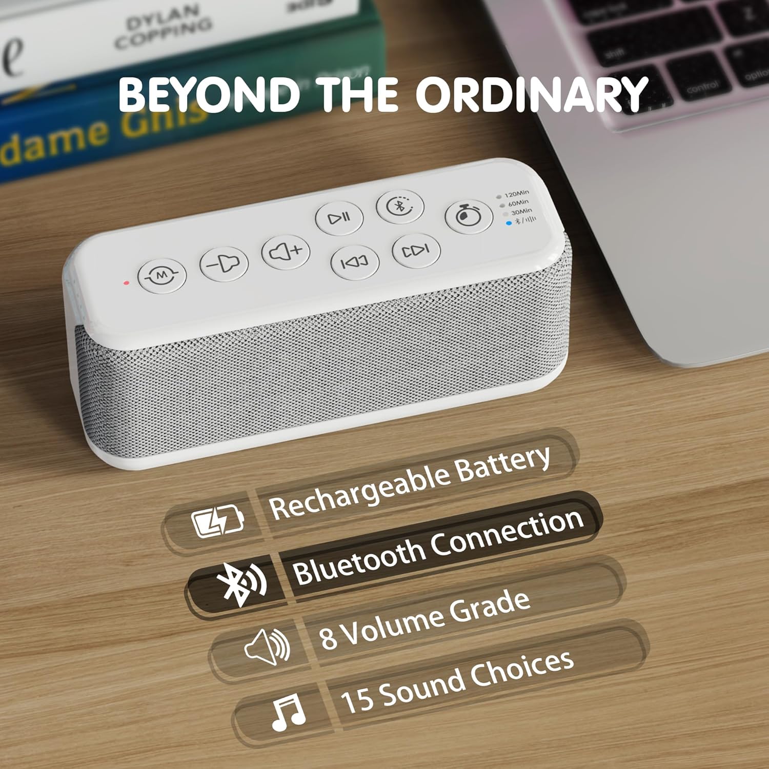 OnLyee White Noise Sound Machine with Bluetooth Speaker, 15 Soothing Sounds, Office Privacy & Noise Canceling, 3000mAh Rechargeable Battery, Auto-Off Timer & 8-Level Volume– Ideal for Baby