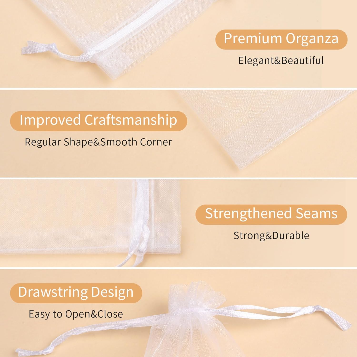 • Package Details: Package comes in 50 pcs white organza bags, with a size of 5x7 inch, offering a practical and stylish solution for organizing and presenting small items.