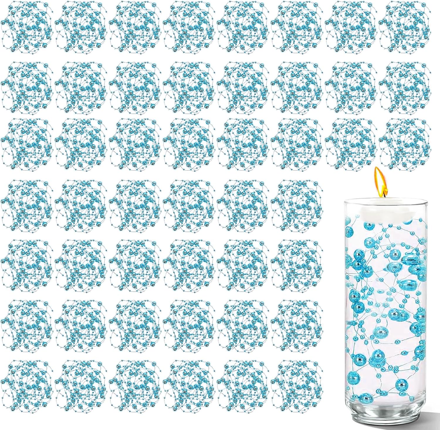 50 PCS Artificial Floating Beads for Centerpieces Vases, Blue 8+3mm String Beads for Wedding Party Faux Pearl String for Decorating, String Pearls for Crafts Vase Filler