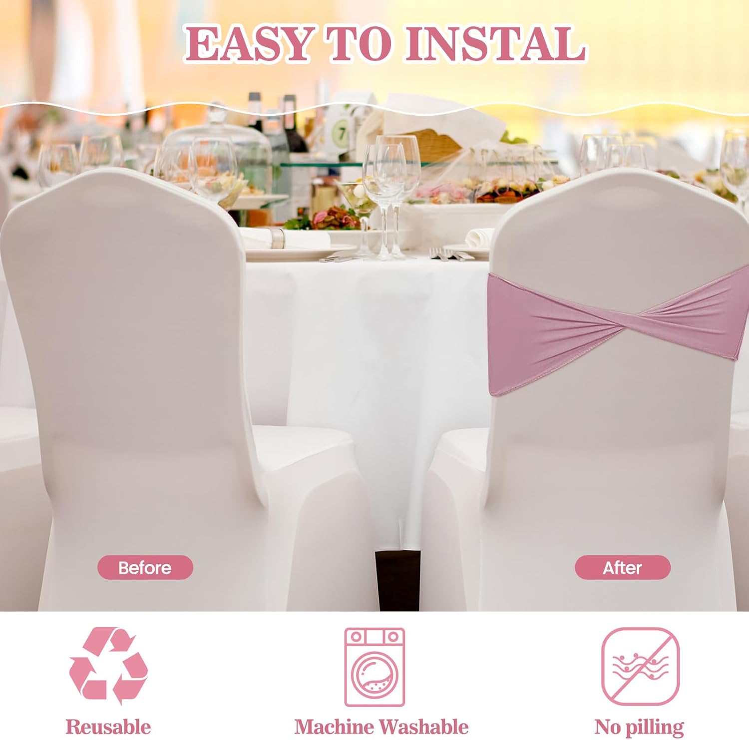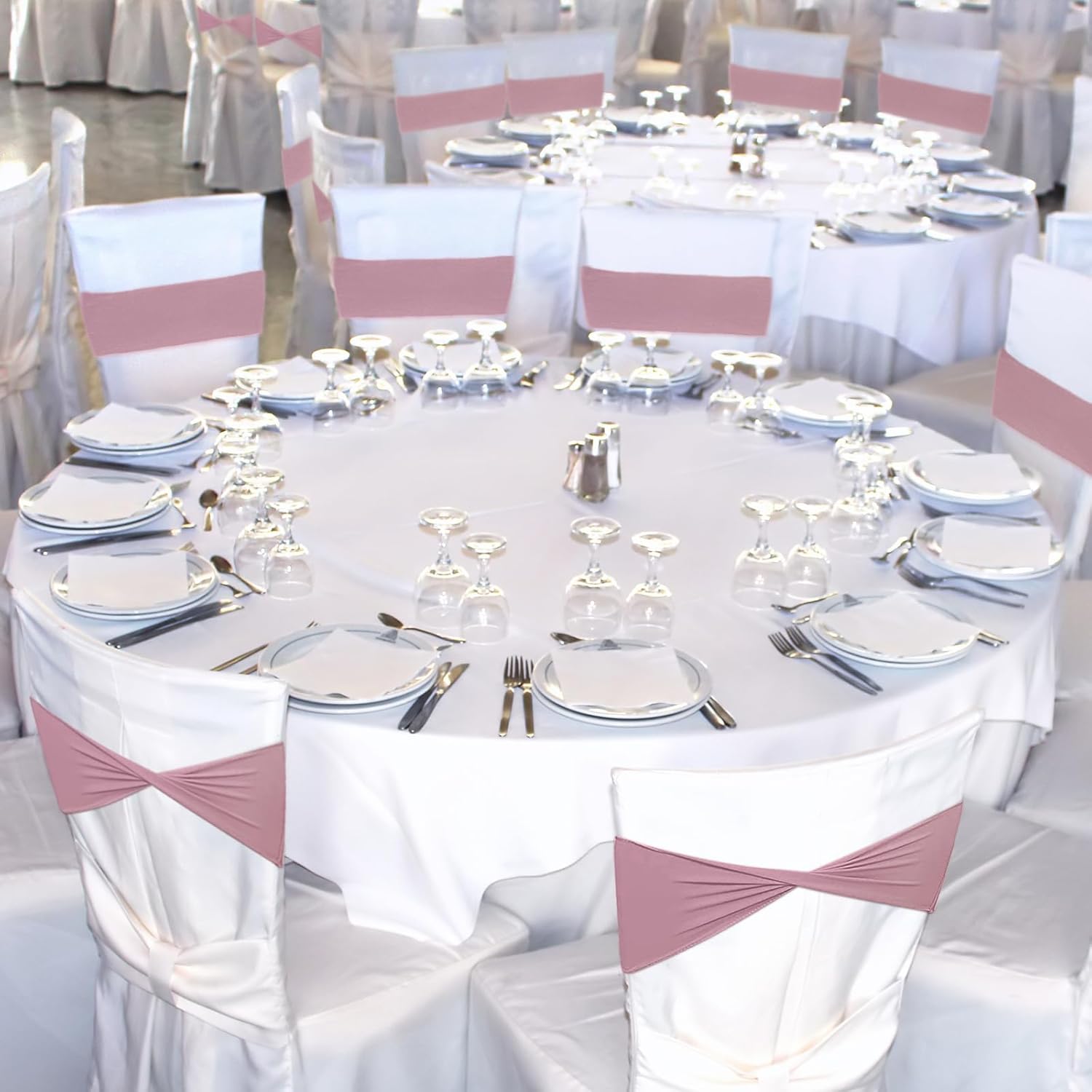 Kinlop 50 Pcs Spandex Chair Sashes Bows Chair Bands Slider Sashes for Covers Elastic Bands Ties Without Buckle Decorations for Wedding Party Events Ceremony Birthday(Dusty Pink)