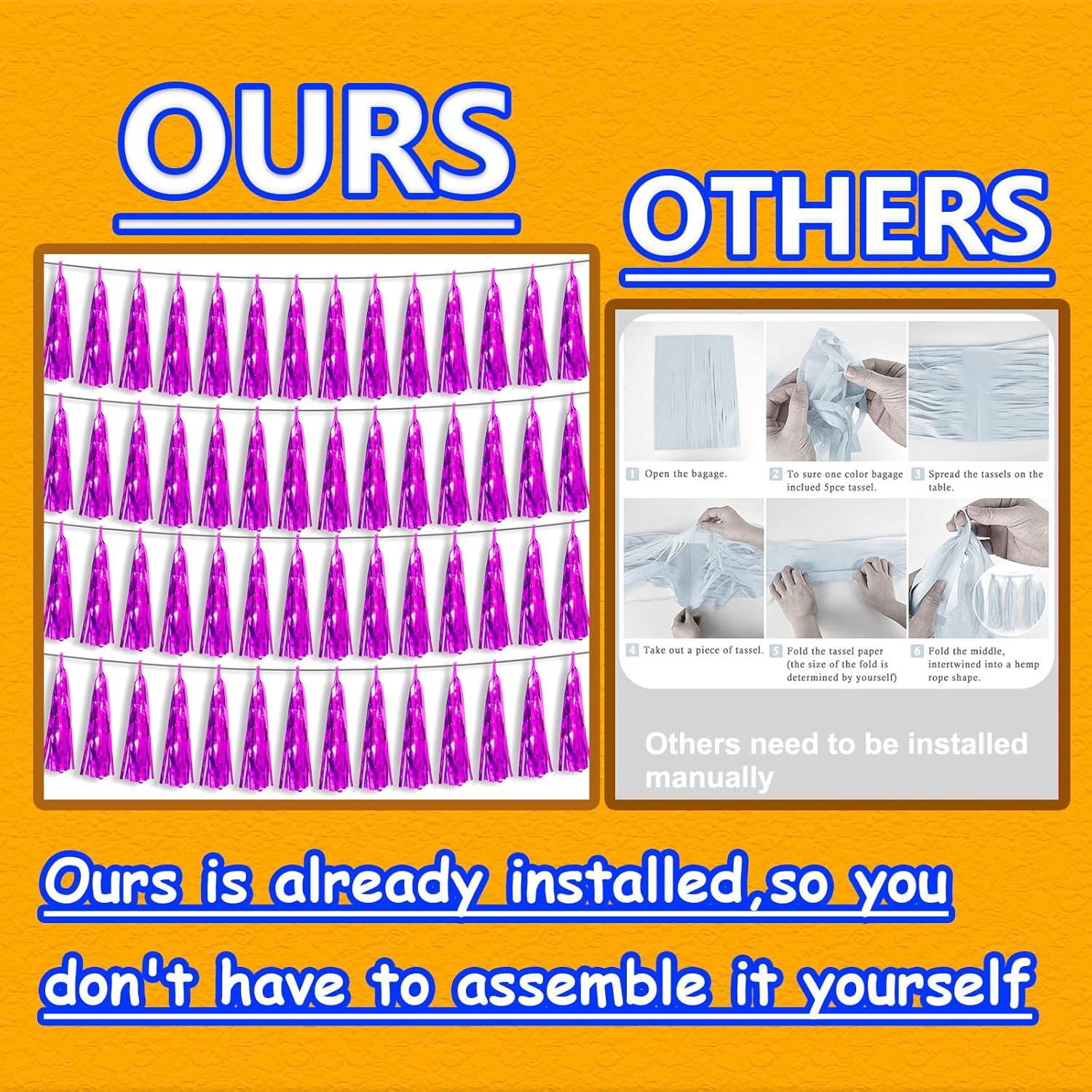 • 【Package Includes】The total length of the hot pinke gold birthday tassels banner is 40 feet, divided into 4 strips, each 10 feet long. Each banner contains 15 tassels, and each tassel measures 14 inches, for birthday decorations many occasions uitable for Patriotic display, Homecoming Float, Christmas Float, ecorative metal trailers, graduation floats etc
