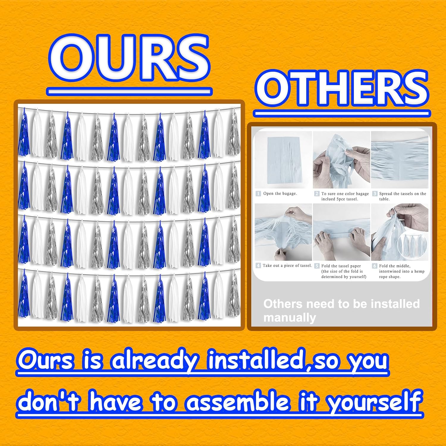 • 【Package Includes】The total length of the navy blue white silver birthday tassels banner is 40 feet, divided into 4 strips, each 10 feet long. Each banner contains 15 tassels, and each tassel measures 14 inches, for birthday decorations many occasions uitable for Patriotic display, Homecoming Float, Christmas Float, ecorative metal trailers, graduation floats etc