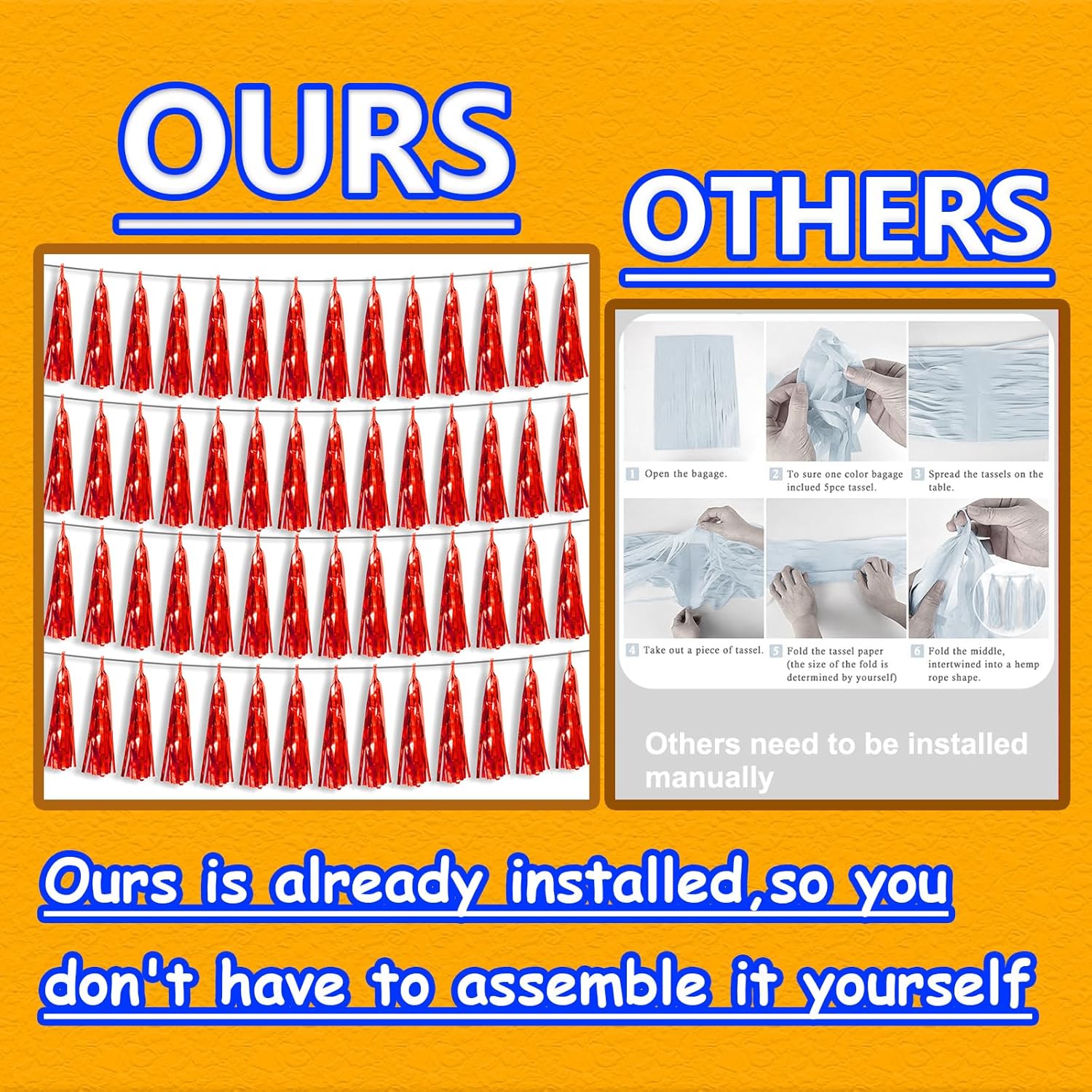 • 【Package Includes】The total length of the red birthday tassels banner is 40 feet, divided into 4 strips, each 10 feet long. Each banner contains 15 tassels, and each tassel measures 14 inches, for birthday decorations many occasions uitable for Patriotic display, Homecoming Float, Christmas Float, ecorative metal trailers, graduation floats etc