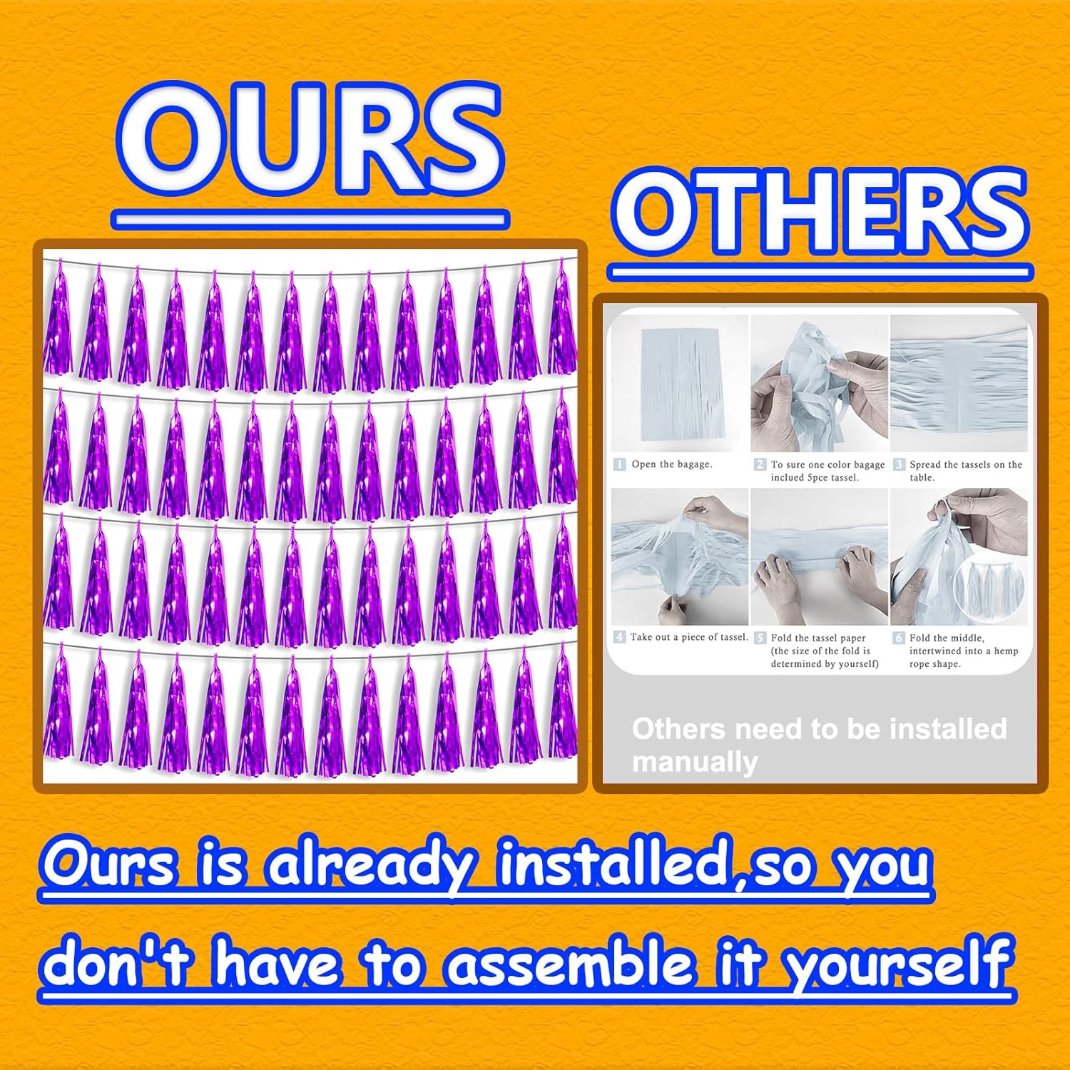 • 【Package Includes】The total length of the purple birthday tassels banner is 40 feet, divided into 4 strips, each 10 feet long. Each banner contains 15 tassels, and each tassel measures 14 inches, for birthday decorations many occasions uitable for Patriotic display, Homecoming Float, Christmas Float, ecorative metal trailers, graduation floats etc