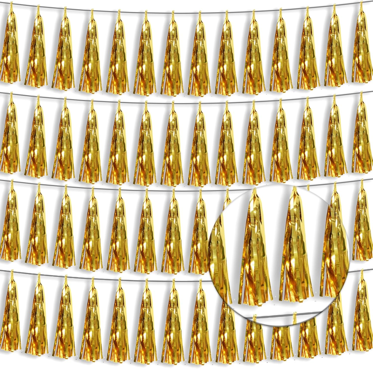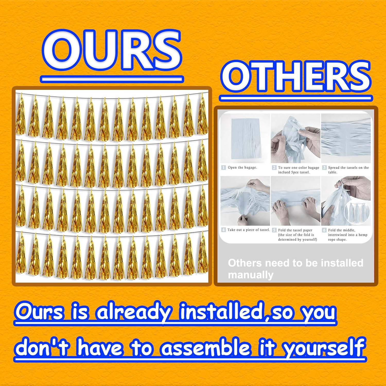 • 【Package Includes】The total length of the gold birthday tassels banner is 40 feet, divided into 4 strips, each 10 feet long. Each banner contains 15 tassels, and each tassel measures 14 inches, for birthday decorations many occasions uitable for Patriotic display, Homecoming Float, Christmas Float, ecorative metal trailers, graduation floats etc