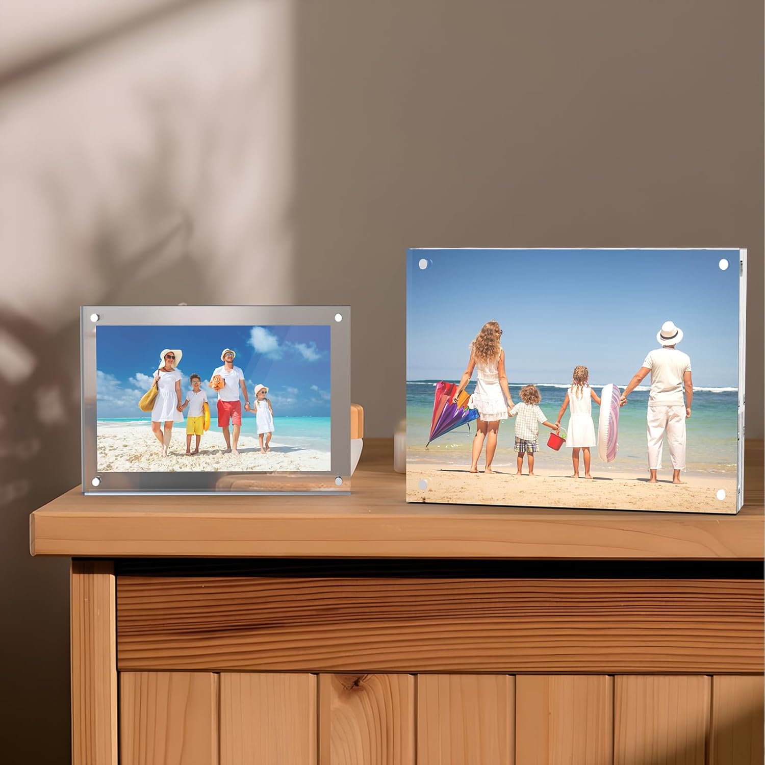 • 【Exquisite and Safe Packaging】: These acrylic picture frames 5x7 are 0.8inches(10+10mm)thick, clean, classy modern look with amazing durability. All acrylic photo frames are wrapped with PVC bags and gift boxes, so that the 5x7 acrylic picture frame arrives safely without scratches. These magnetic photo frames are great present for Christmas, Childbirth, Birthday, Anniversary, Mother’s Day, business partner, family members and any other memorable event.
