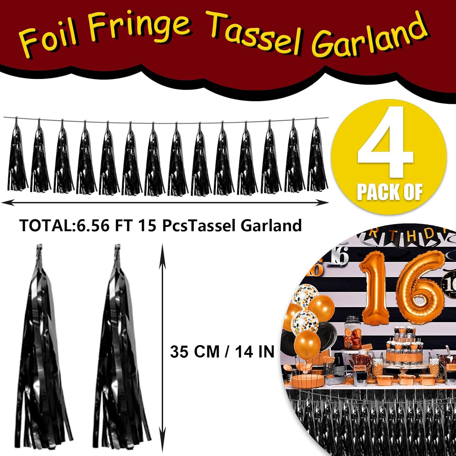 4P Black Foil Fringe Tassel Banner Garland Metallic Tinsel Streamers Wall Hanging Curtain Backdrop Banners for Parade Floats, 2024 Graduation Decorations, Father’s Day Party Decoration