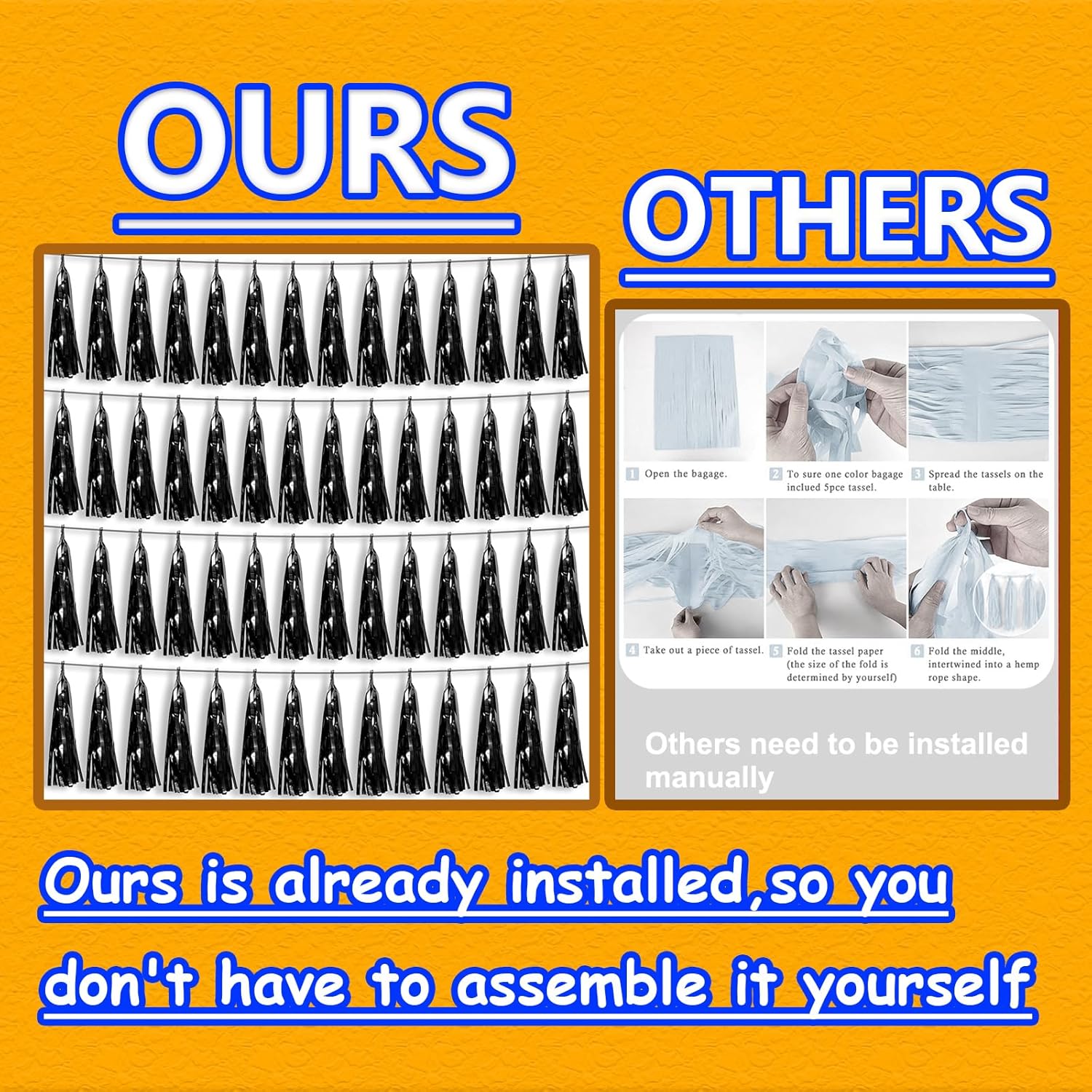 • 【Package Includes】The total length of the black birthday tassels banner is 40 feet, divided into 4 strips, each 10 feet long. Each banner contains 15 tassels, and each tassel measures 14 inches, for birthday decorations many occasions uitable for Patriotic display, Homecoming Float, Christmas Float, ecorative metal trailers, graduation floats etc