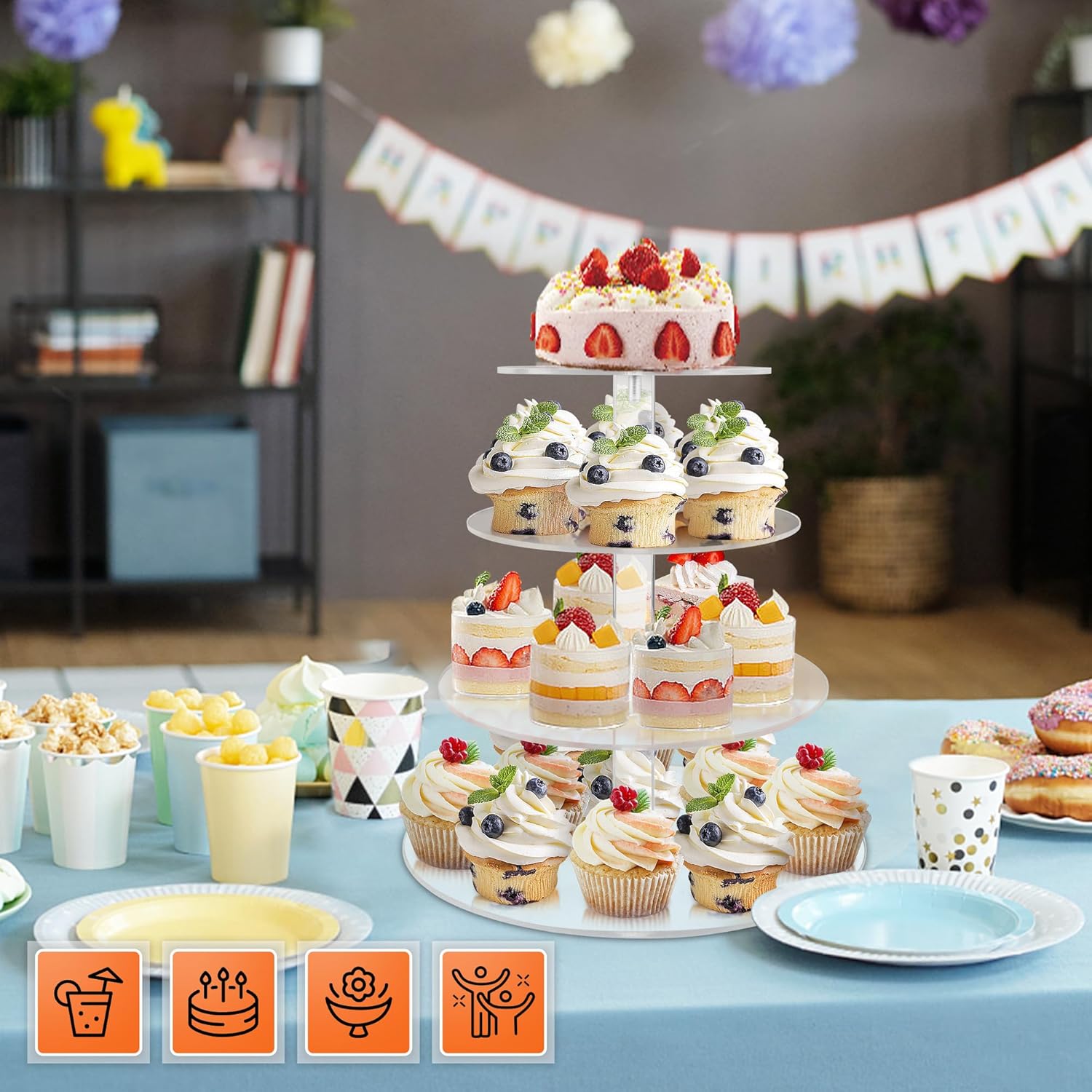 Cupcake Stand, 4 Tier Cupcake Stand for 50 Cupcakes, Round Tiered Cupcake Tower, Clear Acrylic Cupcake Holder, Dessert Stands for Party, Wedding, Birthday, Baby Shower, Halloween