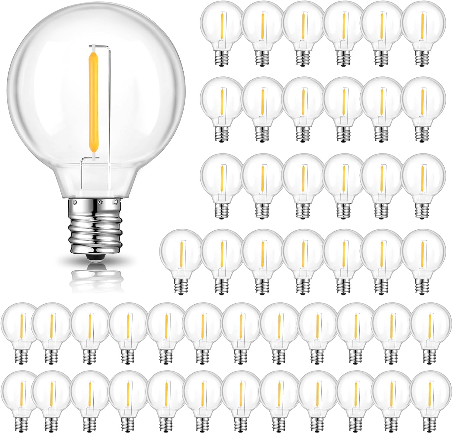50 Pack G40 LED Replacement Bulbs for Outdoor String Lights, Dimmable, Warm White, E12 Screw Base, Waterproof LED Globe Bulbs Light for Indoor Outdoor Patio Cafe Decor