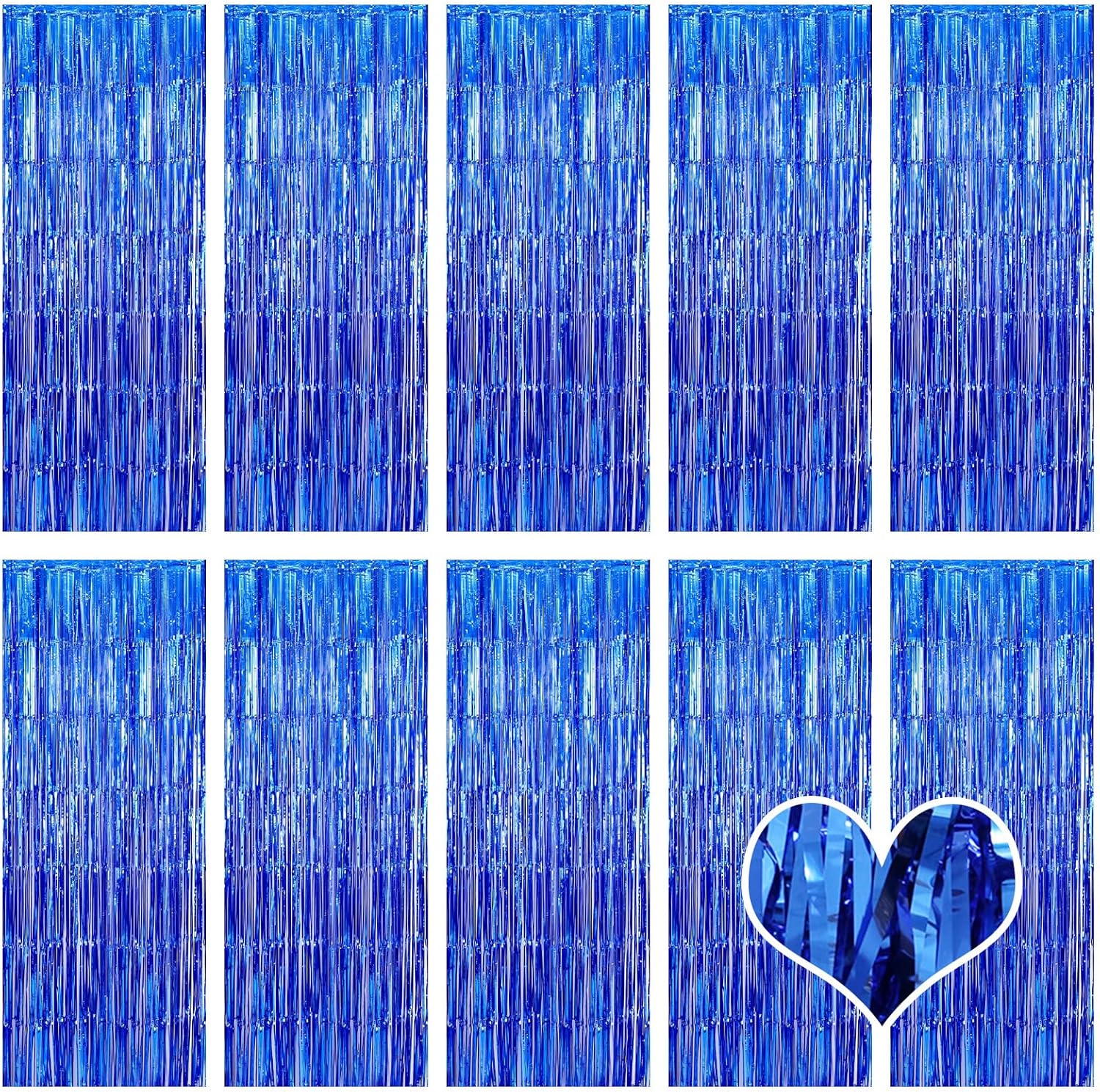 10 Pack Blue Backdrop Curtain 3.2ft x 8.2ft Metallic Tinsel Foil Fringe Curtains Photo Booth Background for Birthday Party Decoration Baby Shower Engagement Wedding Christmas Decoration (Blue)