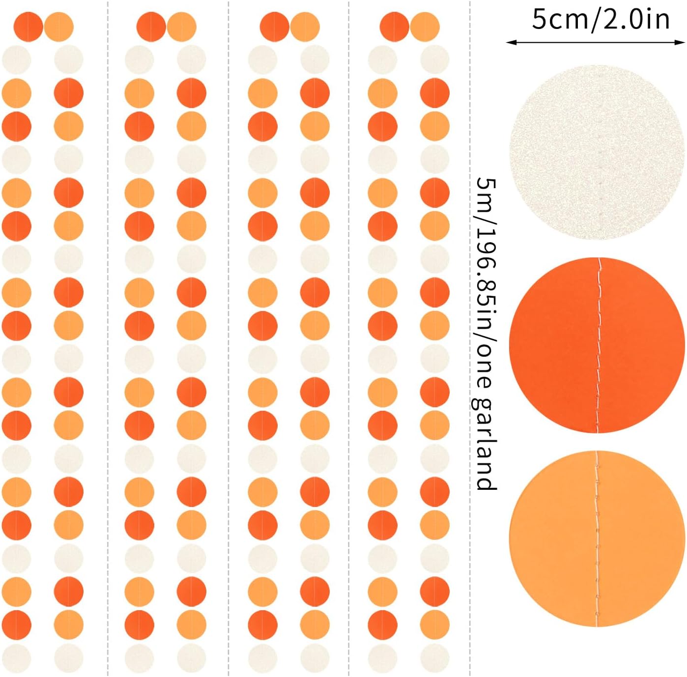 • 【Orange White Party Decorations Kit Includes】The party garlands includes 4pcs paper garlands, each backdrop bunting is 13 feet/ 4 meters long, total length is 52 feet/16 meters. Every Banner has 40pcs dots which the size is 2".
