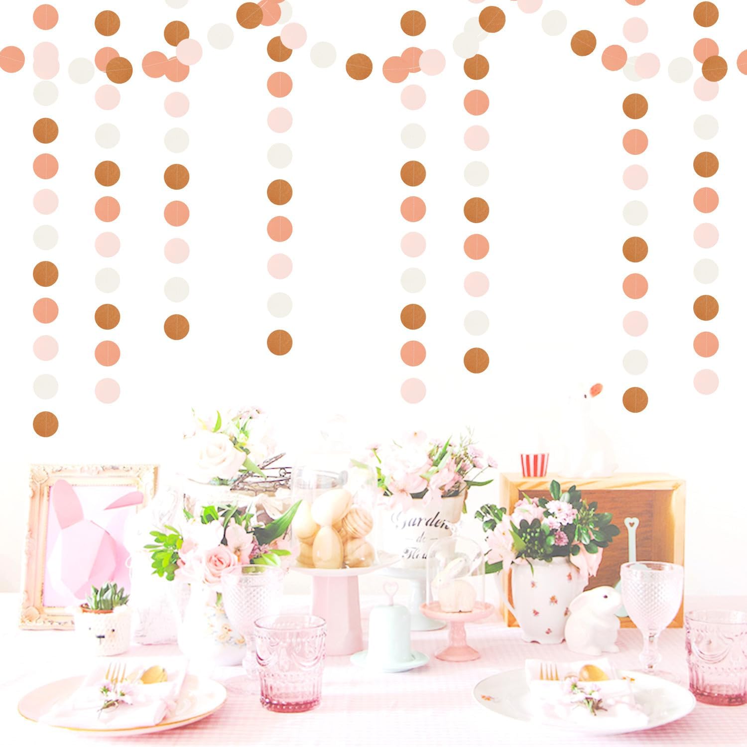 • 【Pink Brown Peach Party Decorations Kit Includes】The party garlands includes 4pcs paper garlands, each backdrop bunting is 13 feet/ 4 meters long, total length is 52 feet/16 meters. Every Banner has 40pcs dots which the size is 2".