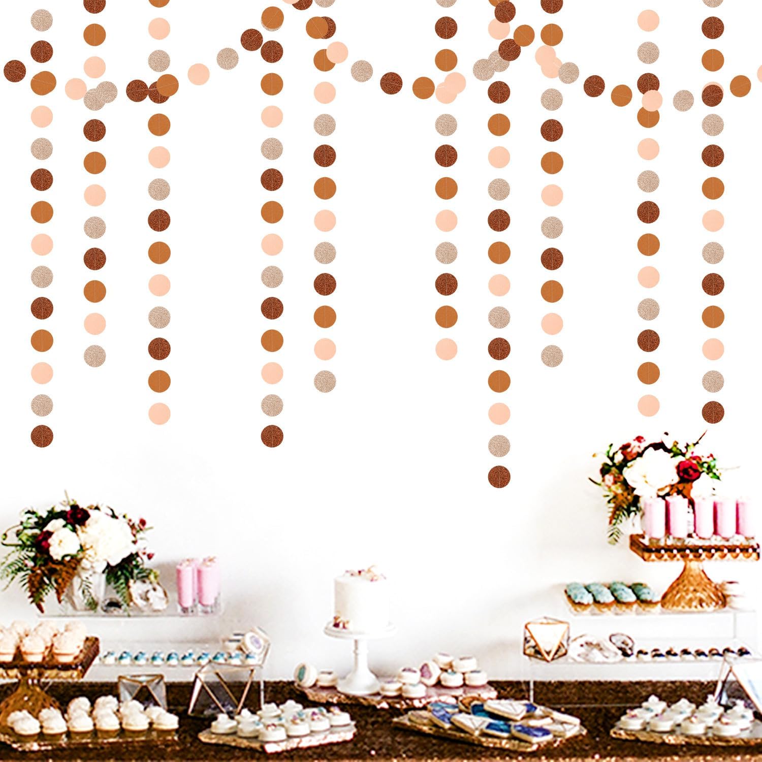 • 【Brown Rose Gold Party Decorations Kit Includes】The party garlands includes 4pcs paper garlands, each backdrop bunting is 13 feet/ 4 meters long, total length is 52 feet/16 meters. Every Banner has 40pcs dots which the size is 2".