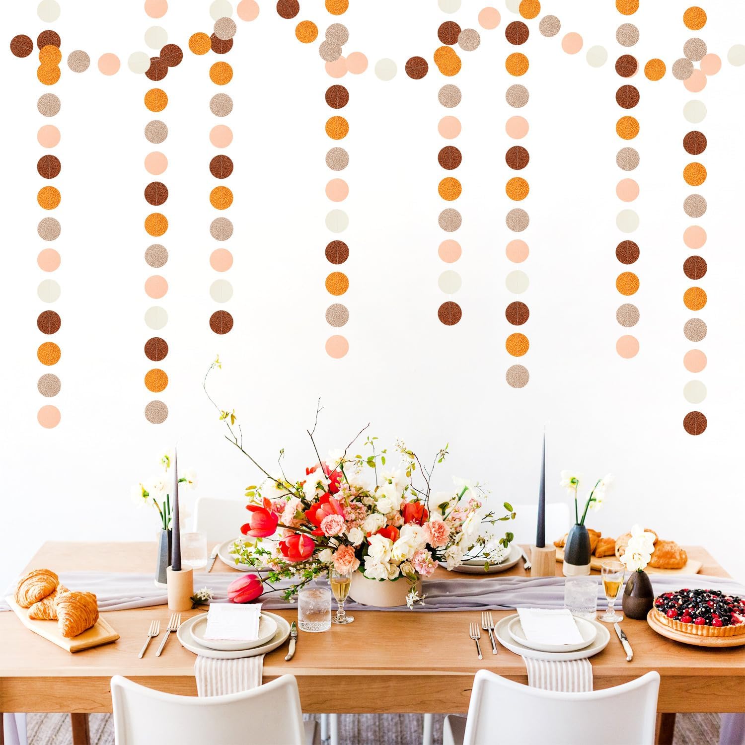• 【Orange Brown Rose Gold Party Decorations Kit Includes】The party garlands includes 4pcs paper garlands, each backdrop bunting is 13 feet/ 4 meters long, total length is 52 feet/16 meters. Every Banner has 40pcs dots which the size is 2".