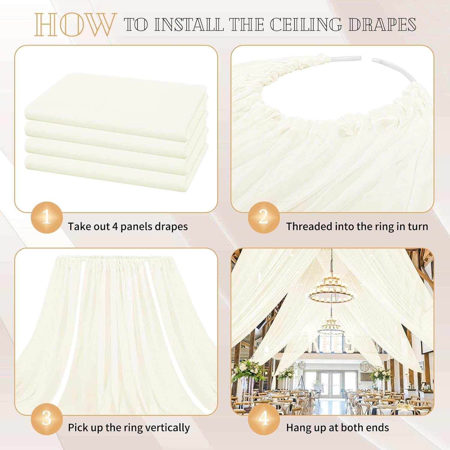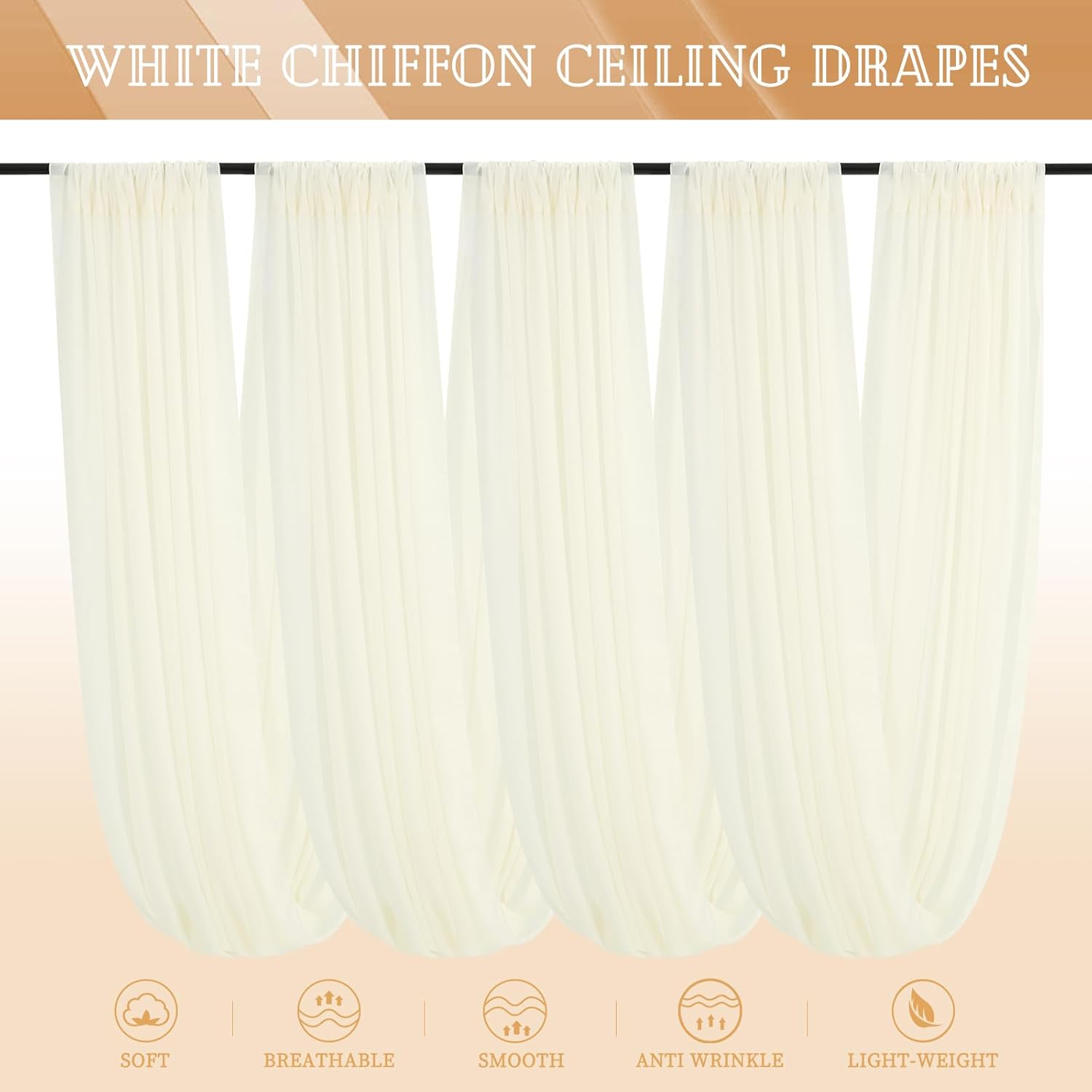 4 Panels Ivory Ceiling Drapes for Wedding 5ftx40ft Sheer Drapery Chiffon Fabric Arch Draping Curtains for Party Ceremony Birthday Baby Shower Reception Stage Ceiling Decorations