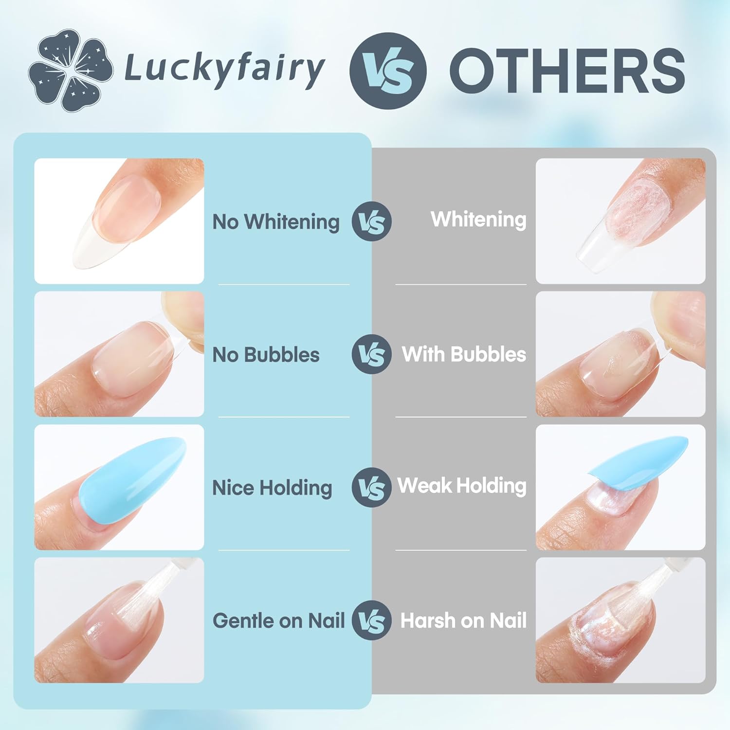• 【Quick-drying & Long-lasting】This nail glue strong has excellent adhesion and is very strong and durable when applied to the nails, ensuring that soft gel nail tips stay securely attached for 7-15 days. The acrylic nail glue does not need nail lamp; simply press for 10-15s to attach the nails.