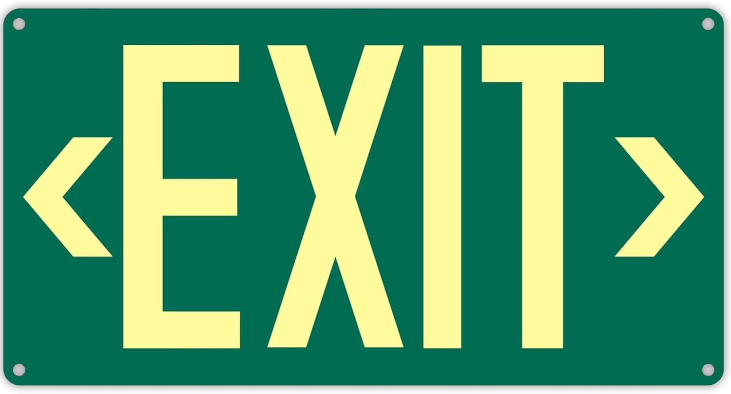 1Pack Photoluminescent Exit Sign Green - Aluminum -14.25"x 7.5" Glow In The Dark Adhesive Backing- Includes 2pcs Removable Arrows- Non Electrical Green Exit Light