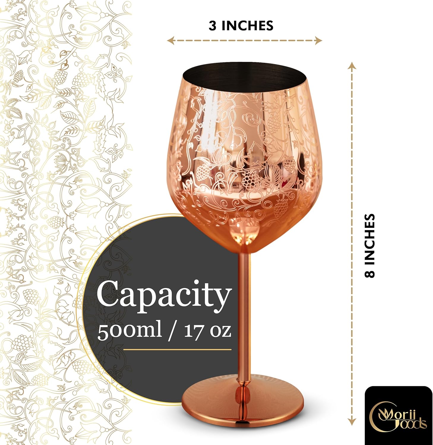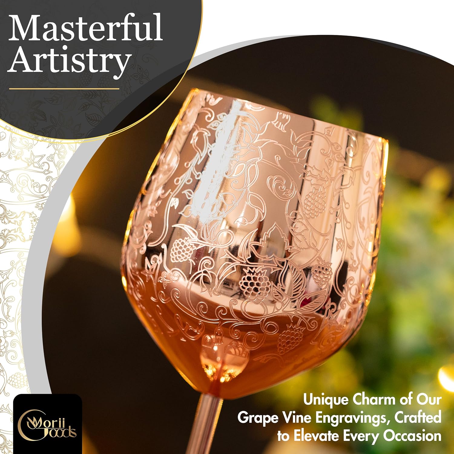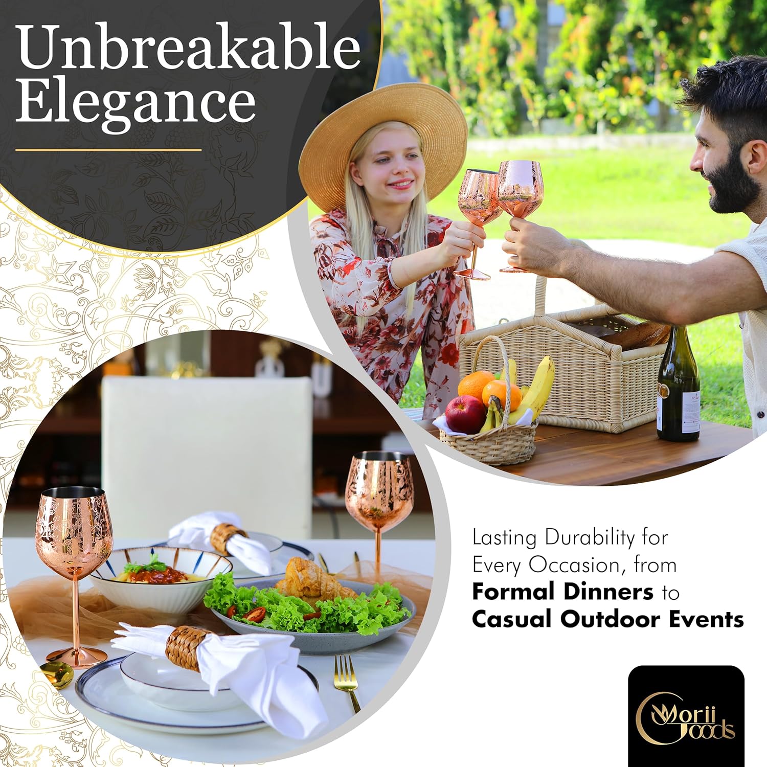 Stainless Steel Wine Glasses – Set of 2 Etched 16 oz Metal Goblets, Unbreakable Rose Gold Cups for Camping, Travel, Outdoor Events, Picnics, Luxury Wine Gifts for Women and Men