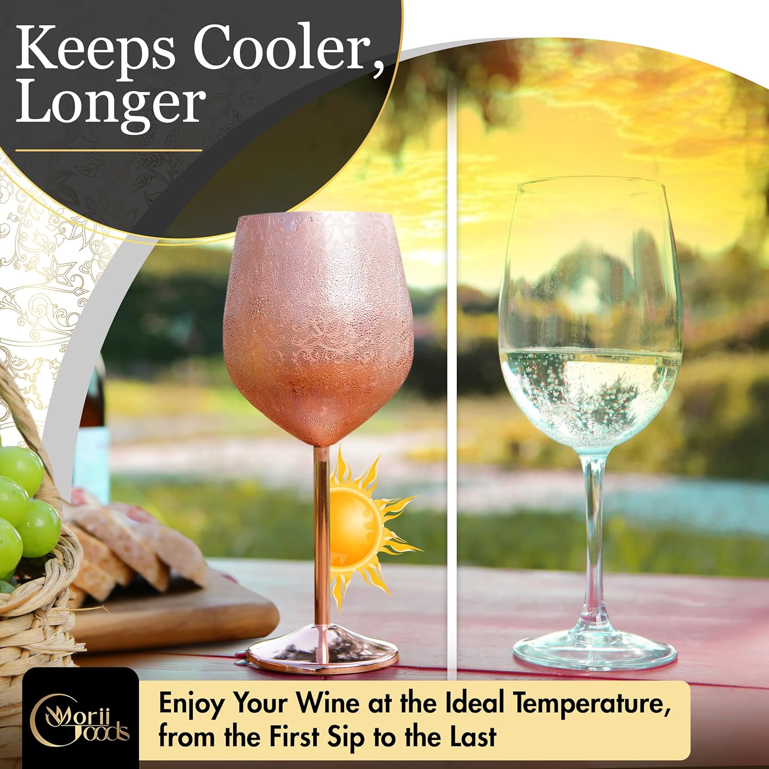 • KEEPS WINE COLDER LONGER - Enjoy your wine at the perfect temperature for extended periods. The stainless steel wine glasses keep your wine colder for longer, enhancing your drinking experience.