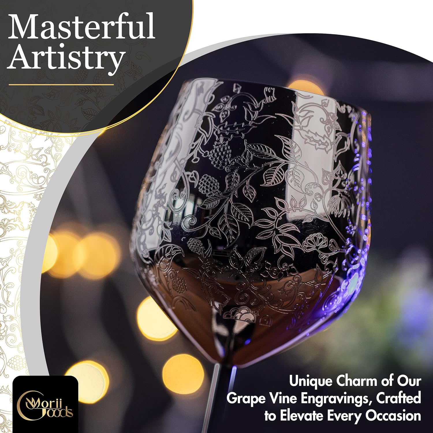 • ELEGANT GRAPE VINE ENGRAVING -Featuring a beautifully engraved grapevine pattern, these engraved wine glasses add a touch of sophistication to your wine-drinking experience, making each sip feel special.