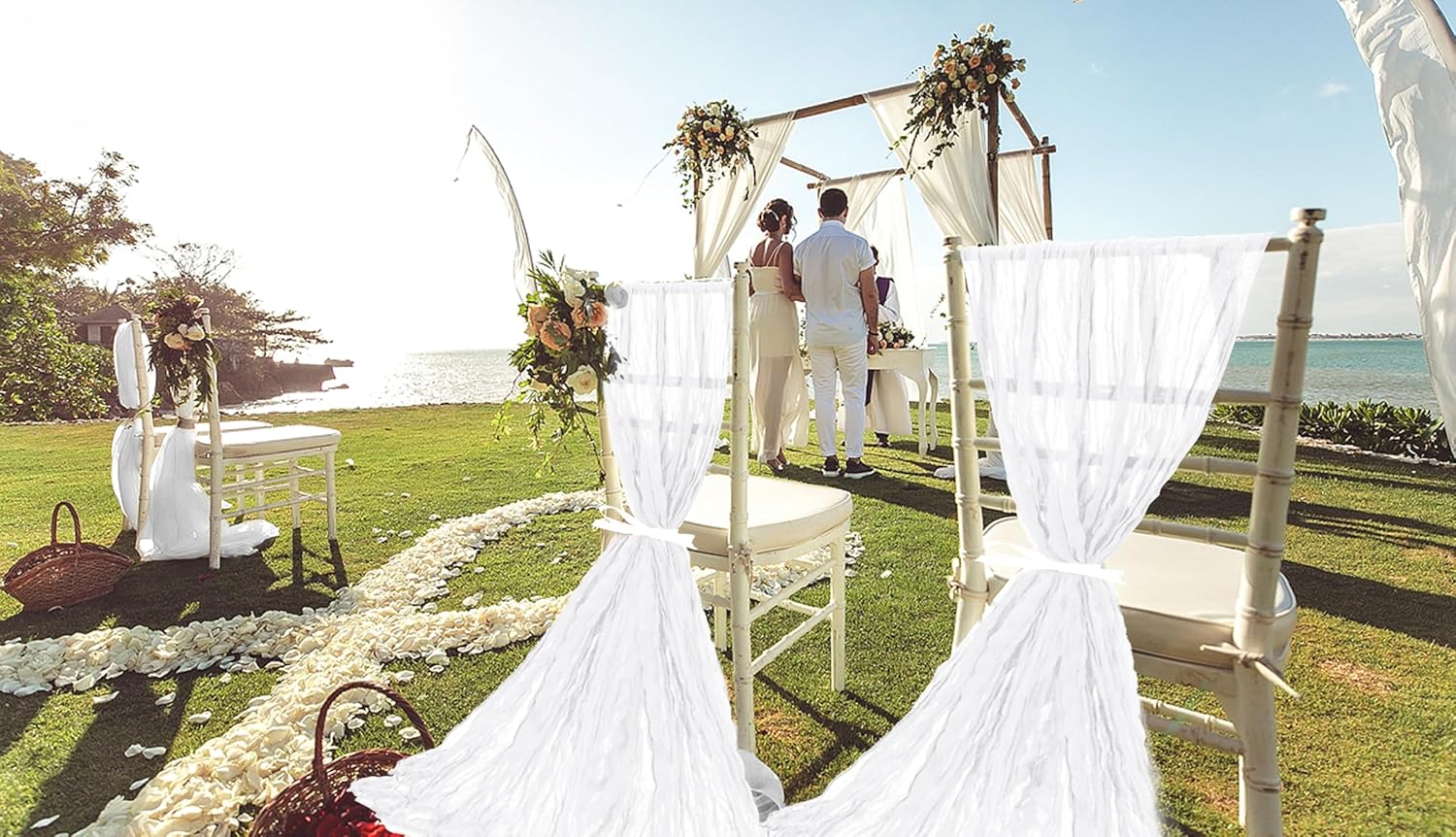 • 【Delicate Craftsmanship】White cheesecloth chair sashes adopt unique pleated workmanship, and the overall appearance is simple and elegant, creating an elegant and romantic atmosphere easily. The edges are carefully stitched to keep a perfect flowing condition, will not get broken or loose easily, can serve you for a long time