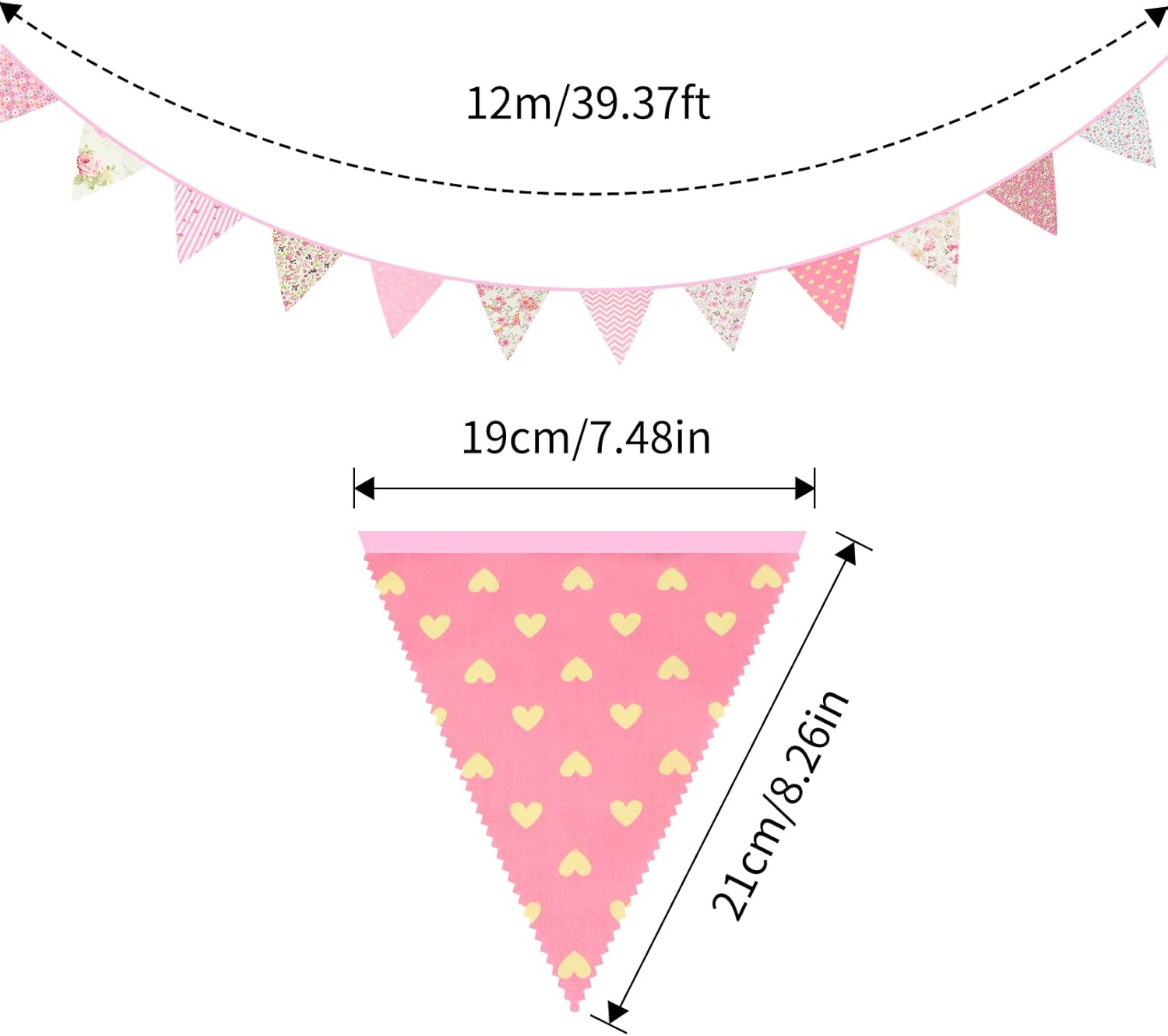 jijAcraft 39Ft Triangle Bunting Banner, 42Pcs Tea Floral Party Bunting Cotton Fabric Flags Pennant Garlands for Birthday Party, Wedding, Baby Shower, Outdoor and Home Decorations (Pink)