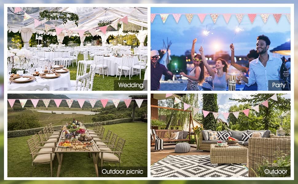 • 【Versatile Decoration】Whether you’re decorating for an outdoor garden party or an indoor celebration, this bunting banner is perfect. Hang it on walls, windows, ceilings, or around tables to create a festive atmosphere.
