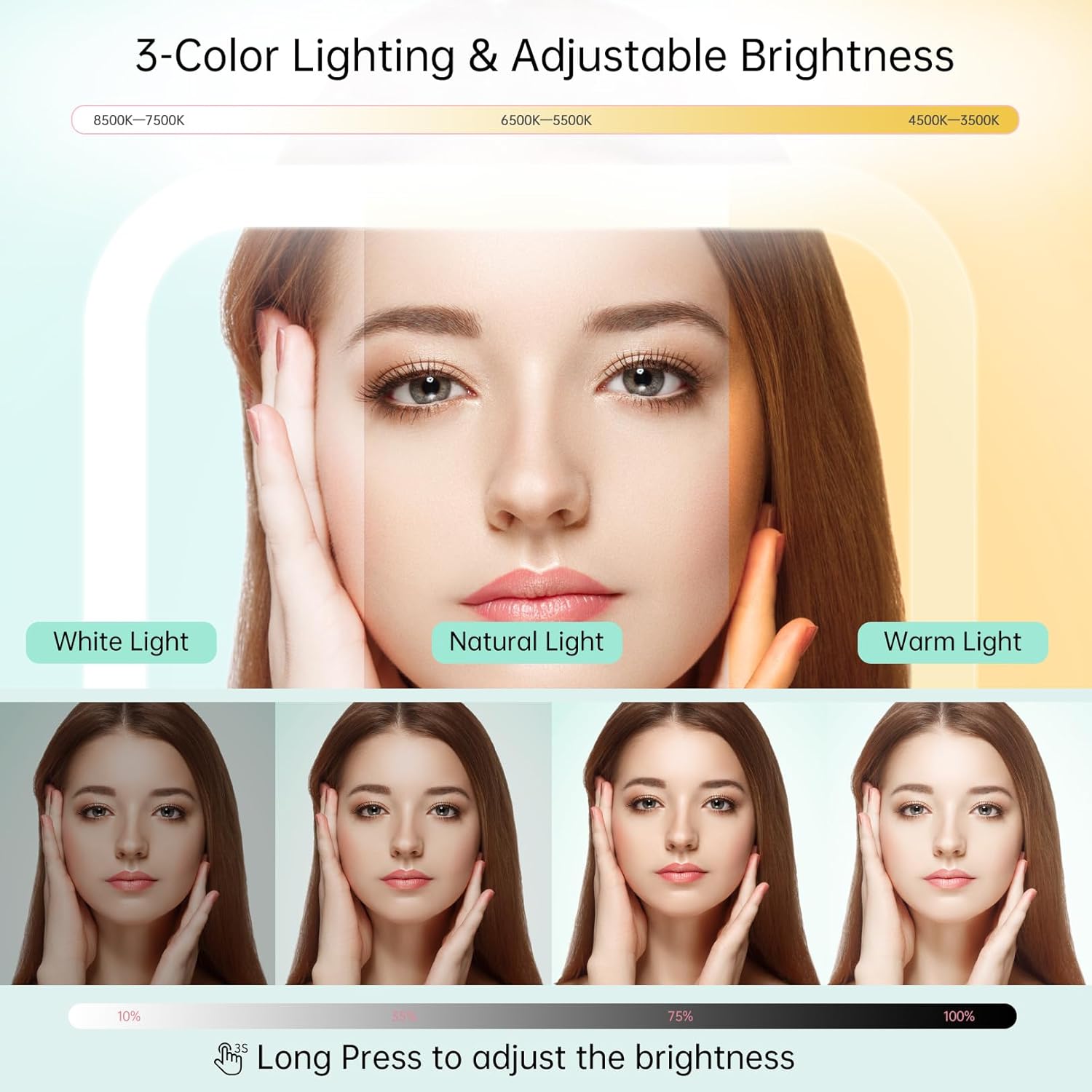 • 💯【Perfect Gift for Women】The protable vanity mirror with light can be an ideal gift for mom, girlfriend, wife, husband, etc. on Valentine's Day, Mother's Day, Christmas, New Year and other special holidays. From now on, say goodbye to wrong lighting and imperfect makeup! Note: Keep the mirror 4.5 inches away from your face.