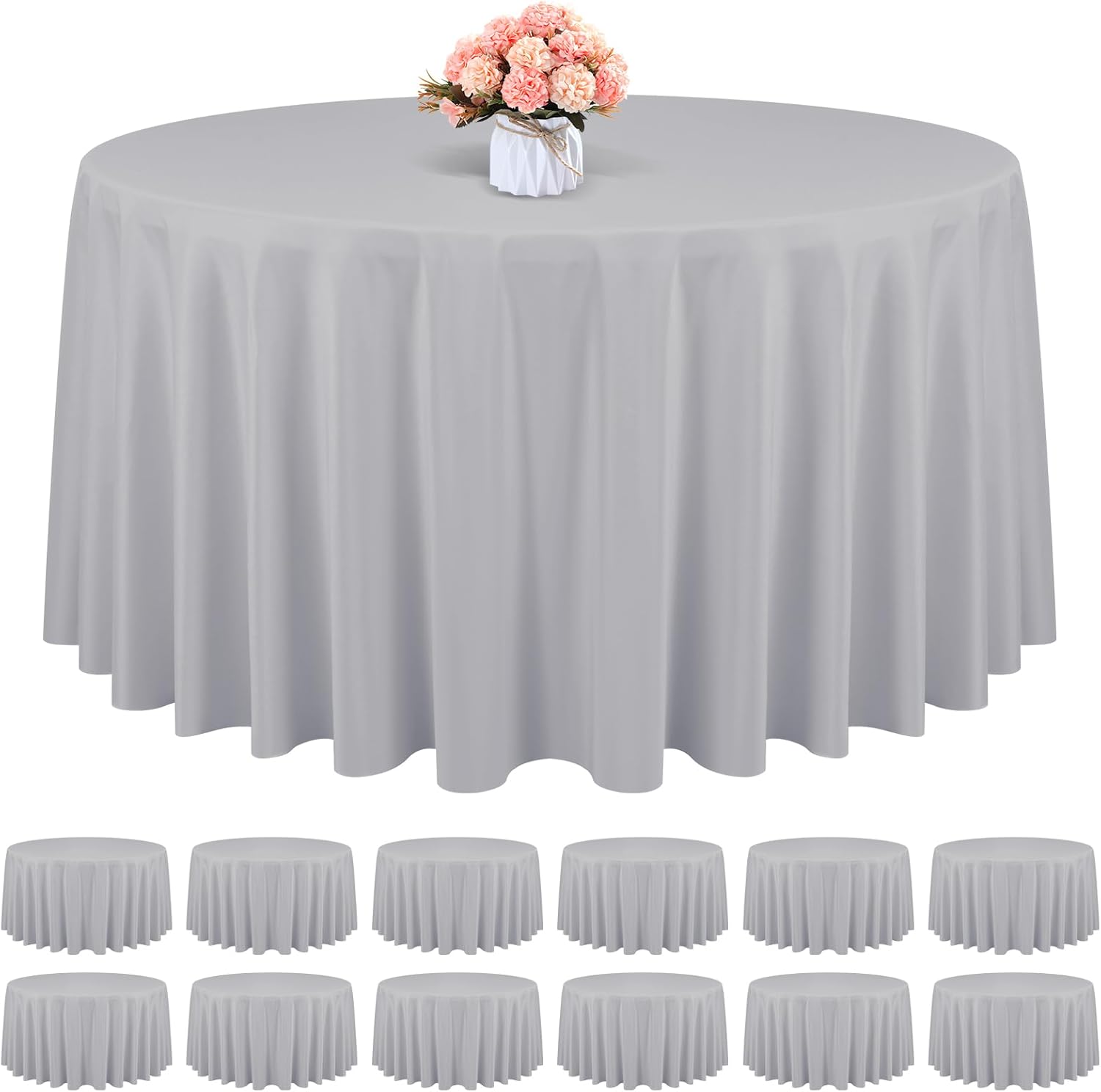 12 Pack Round Tablecloth 90 Inch - Light Grey Polyester TableCloth for Round Table, Premium Light Grey Tableclothes Washable Fabric Table Cover for Wedding Party Banquet Restaurant Reception Dining