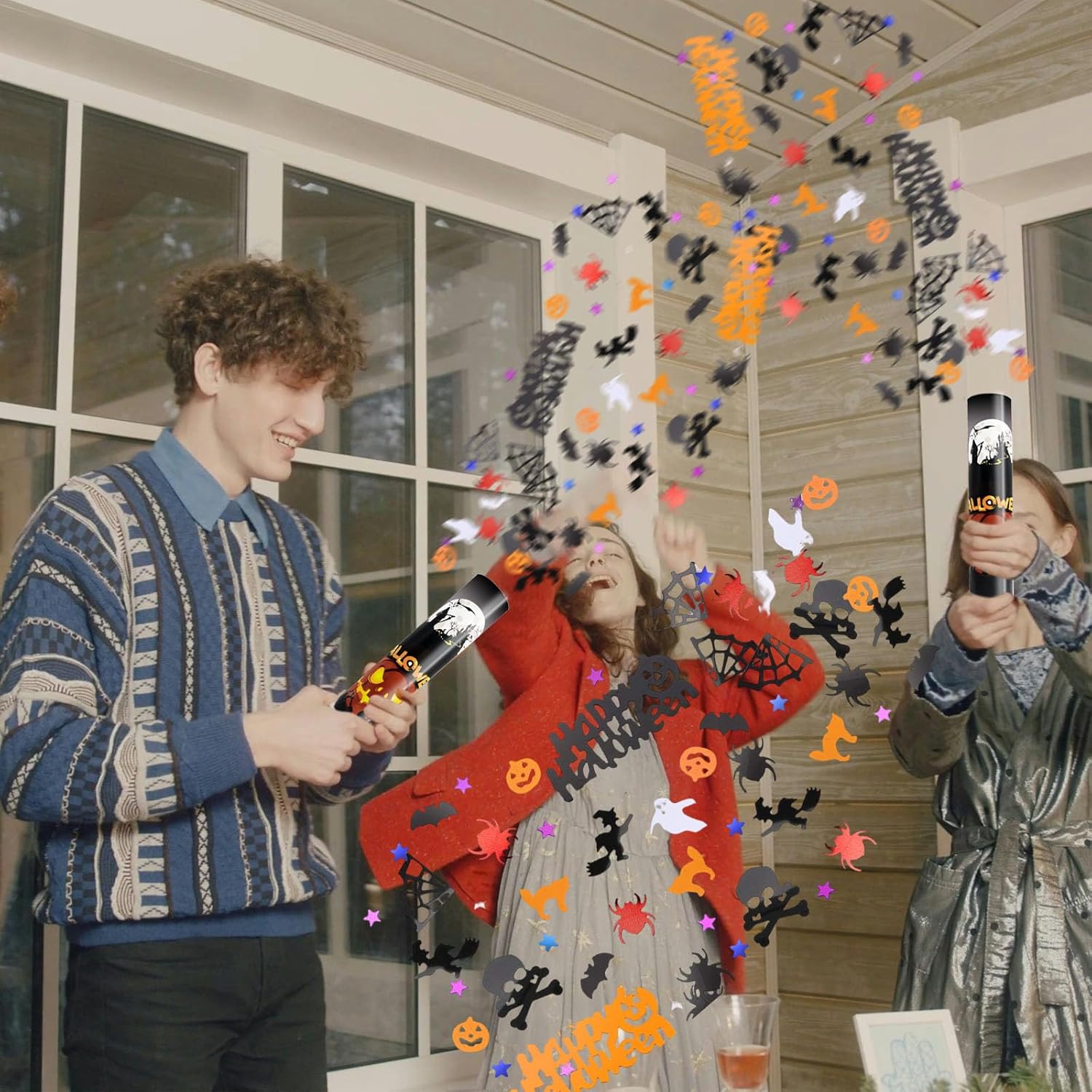 • 【Halloween Confetti Poppers】The use of confetti cannons is a vibrant and festive addition to Halloween occasions. The sudden burst of colorful paper shards creates a joyful atmosphere, surprising and delighting guests. Whether indoors or outdoors, confetti cannons are a safe and effective way to make any special day even more memorable.