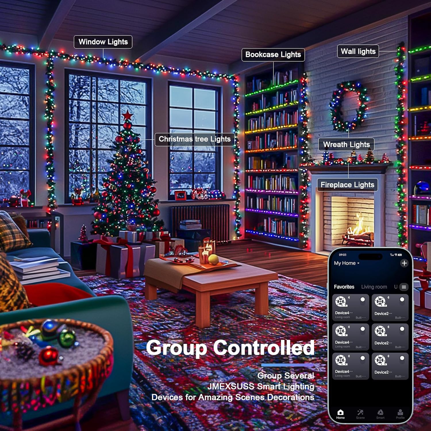 • 16 Million Colors Christmas Lights: JMEXSUSS smart Christmas lights offer a more extensive range of colors compared to other string lights. This includes standard single colors, unique bi-color combinations, and traditional tri-color and multi-color options, making them ideal for any festival lighting decor throughout the year. Multicolor, white, red & white, red & green, etc for Xmas; red white blue for July 4th; orange & purple for Halloween/ Thanksgiving, red/pink/green for Christmas.