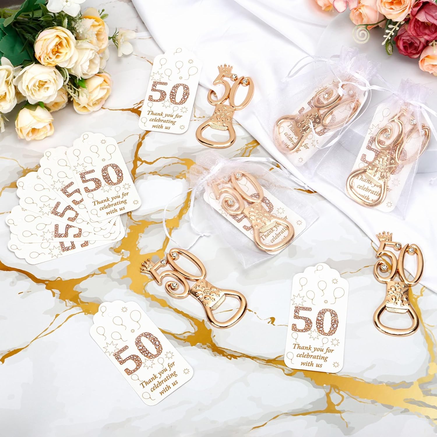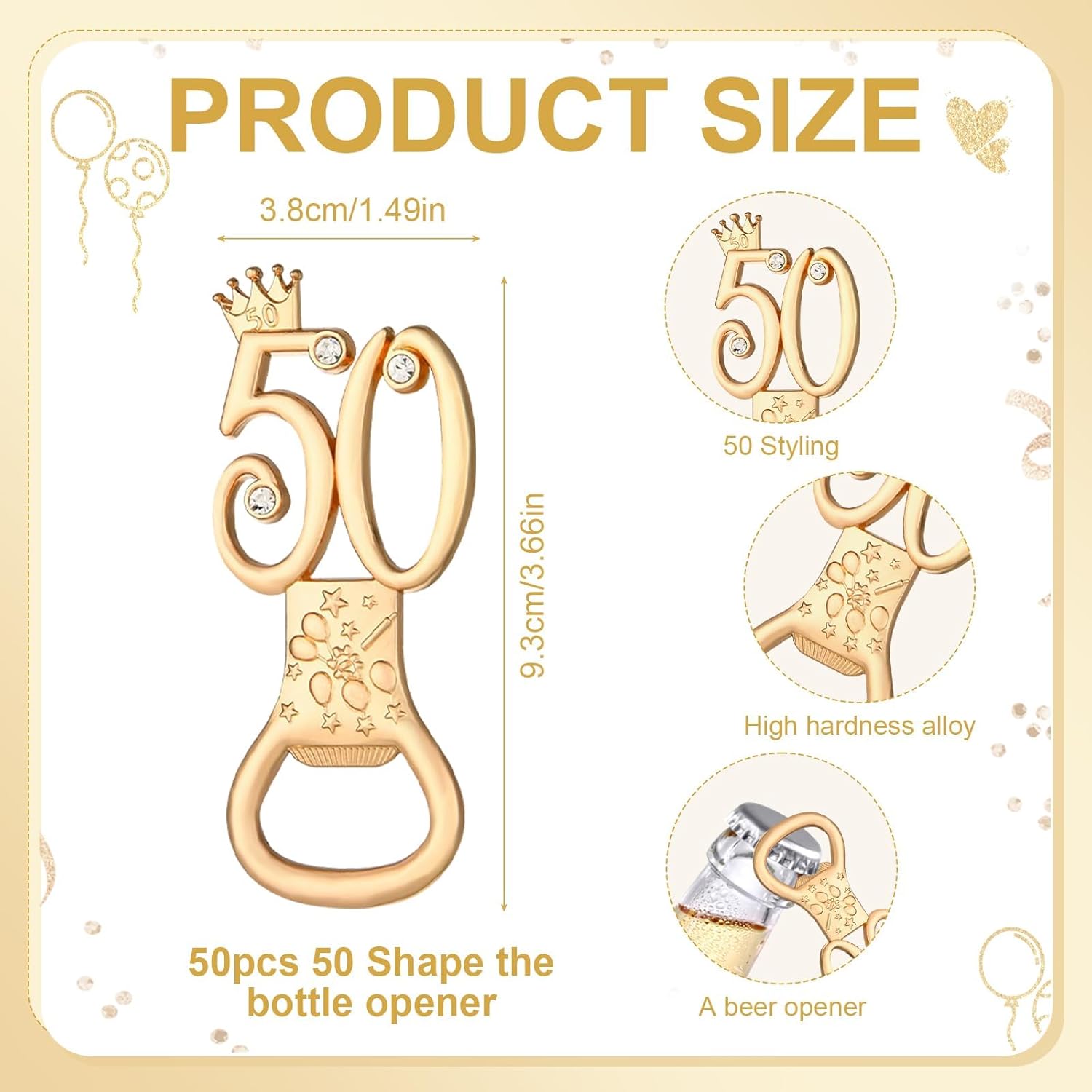 50Pcs 50th Birthday Bottle Opener Set 50th Birthday Party Favors 50th Golden Bottle Openers Personalized Party Favors Wedding Anniversaries Souvenirs Favors For Guests Party
