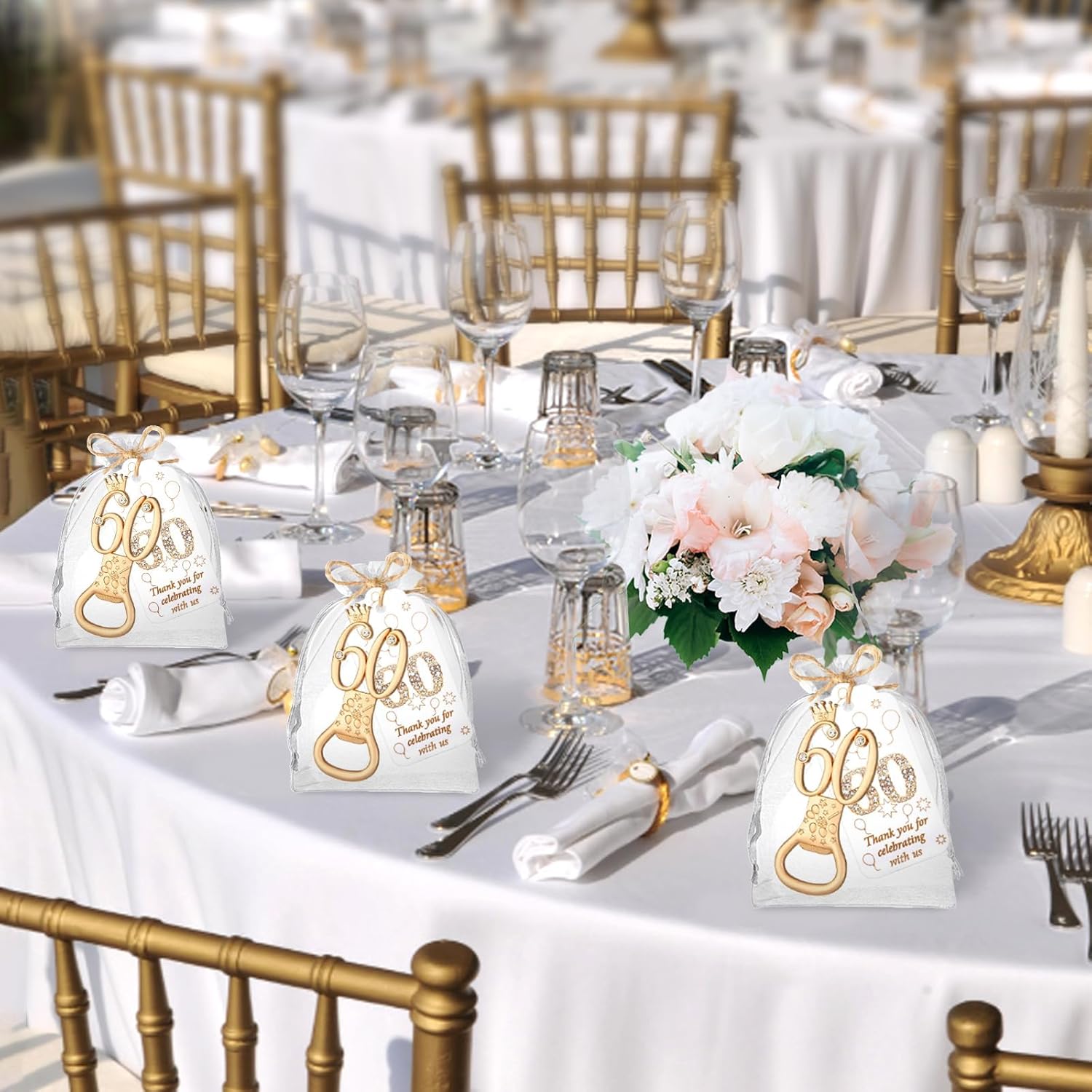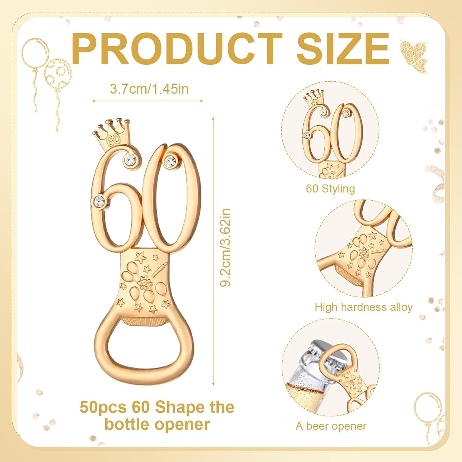 50Pcs 60th Birthday Bottle Opener Set 60th Birthday Party Favors 60th Golden Bottle Openers Personalized Party Favors Wedding Anniversaries Souvenirs Favors For Guests Party