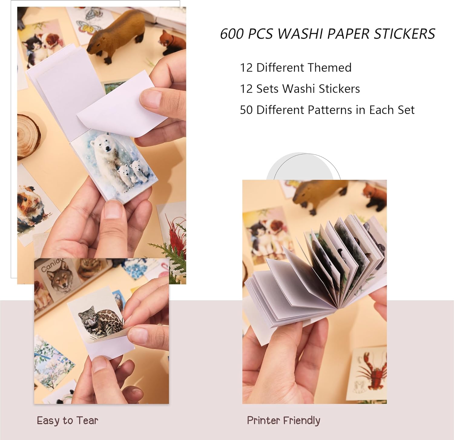 12 Sets 600 Sheets Washi Stickers Book for Journaling, Jungle Animal Sticker, Wild Zoo Sea Animal Aesthetic Scrapbook Dinosaur Sticker Set for Bullet Journal Card Craft Gift Rewards for Kid Notebook