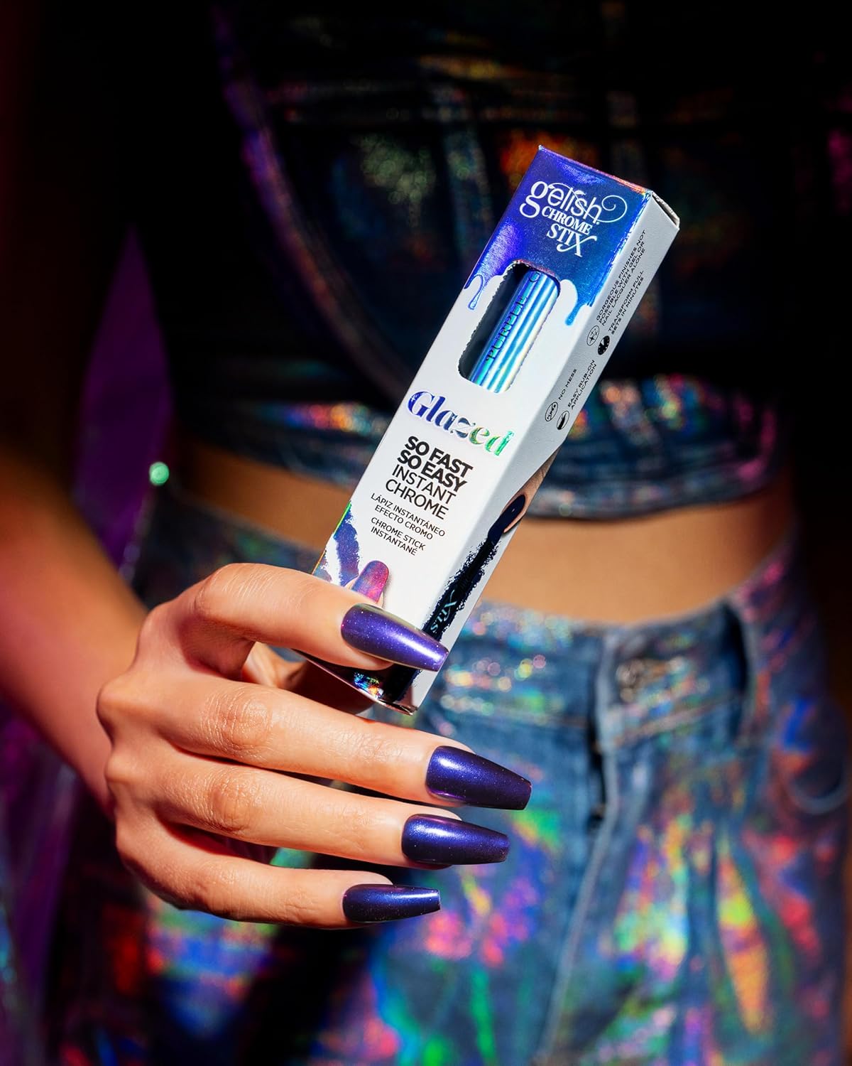 • Chrome Stix, the easiest and fastest way to achieve a gorgeous chrome finish to your gel manicure! Chrome Stix come in multi-dimensional shades that are guaranteed to take your nail look to the next level. Chrome Stix offer a reflective chrome shine that cannot be achieved with gel polish or lacquer applications alone.