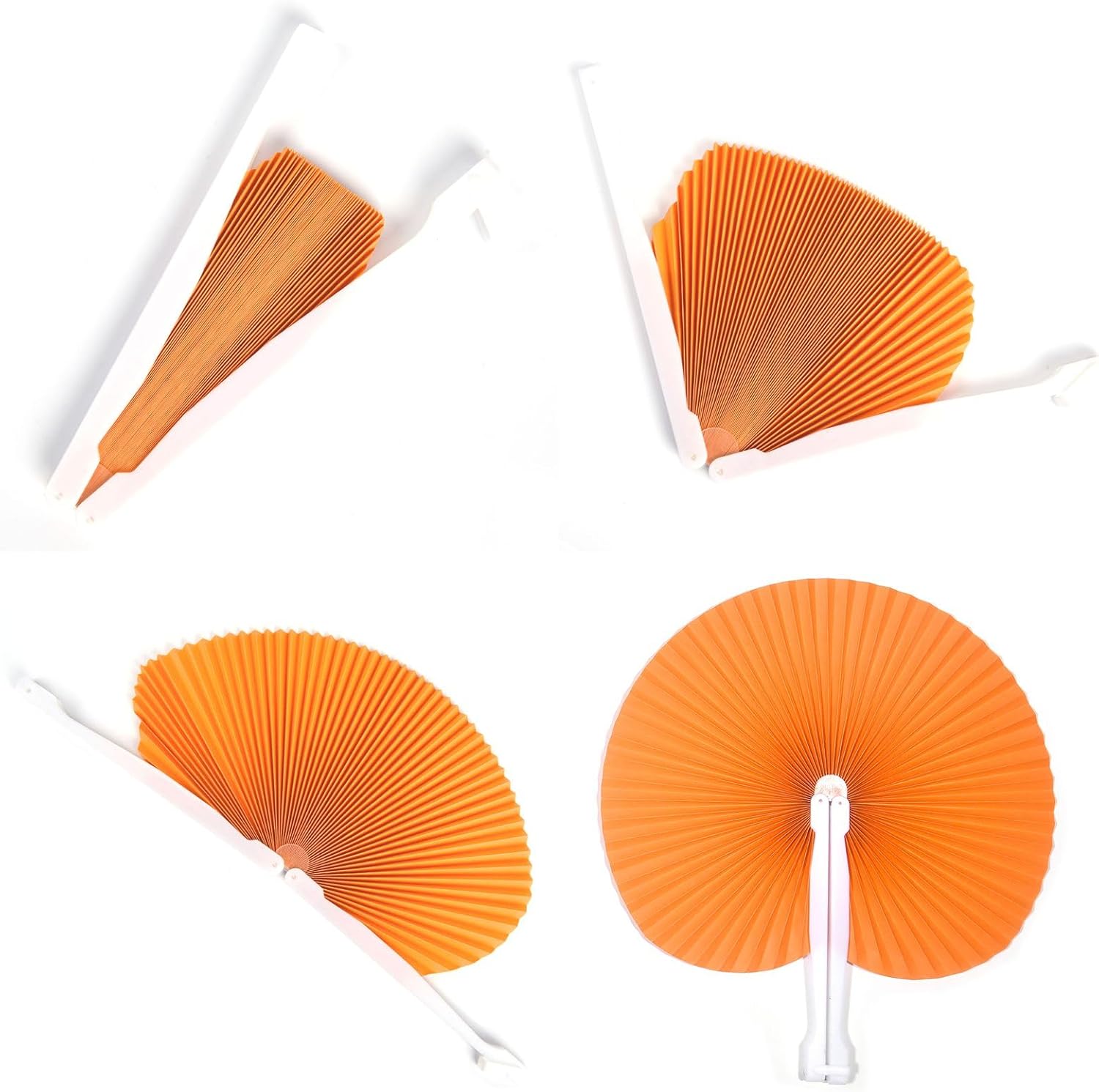 12 Packs Decorative Paper Folding Hand Fans Handheld,Orange Round Foldable Wedding Fans Chinese and Japanese Fans Bulk for Bridal Guest Church Party Favors Dancing Birthday DIY