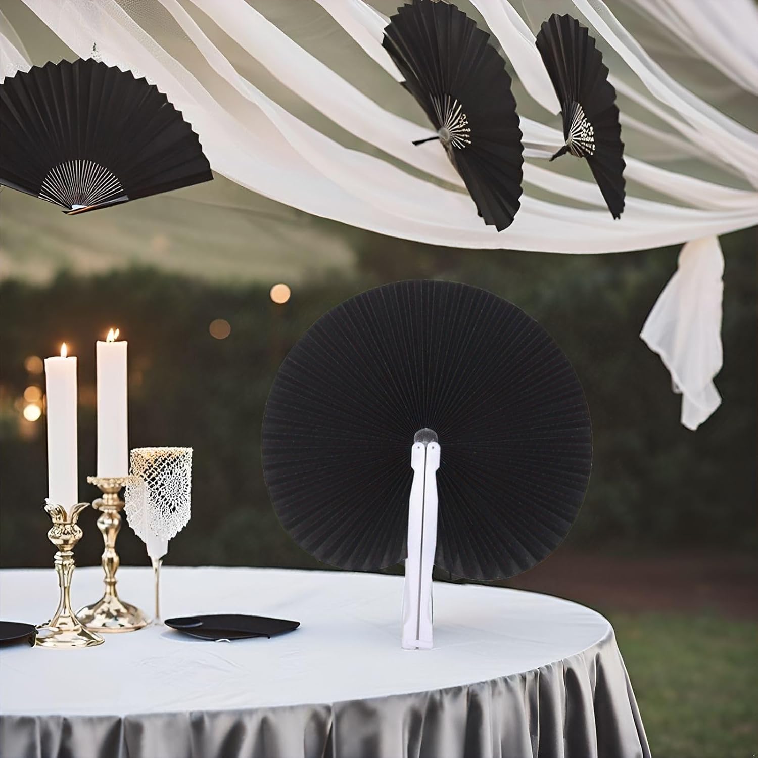 12 Packs Decorative Paper Folding Hand Fans Handheld,Black Round Foldable Wedding Fans Chinese and Japanese Fans Bulk for Bridal Guest Church Party Favors Dancing Birthday DIY