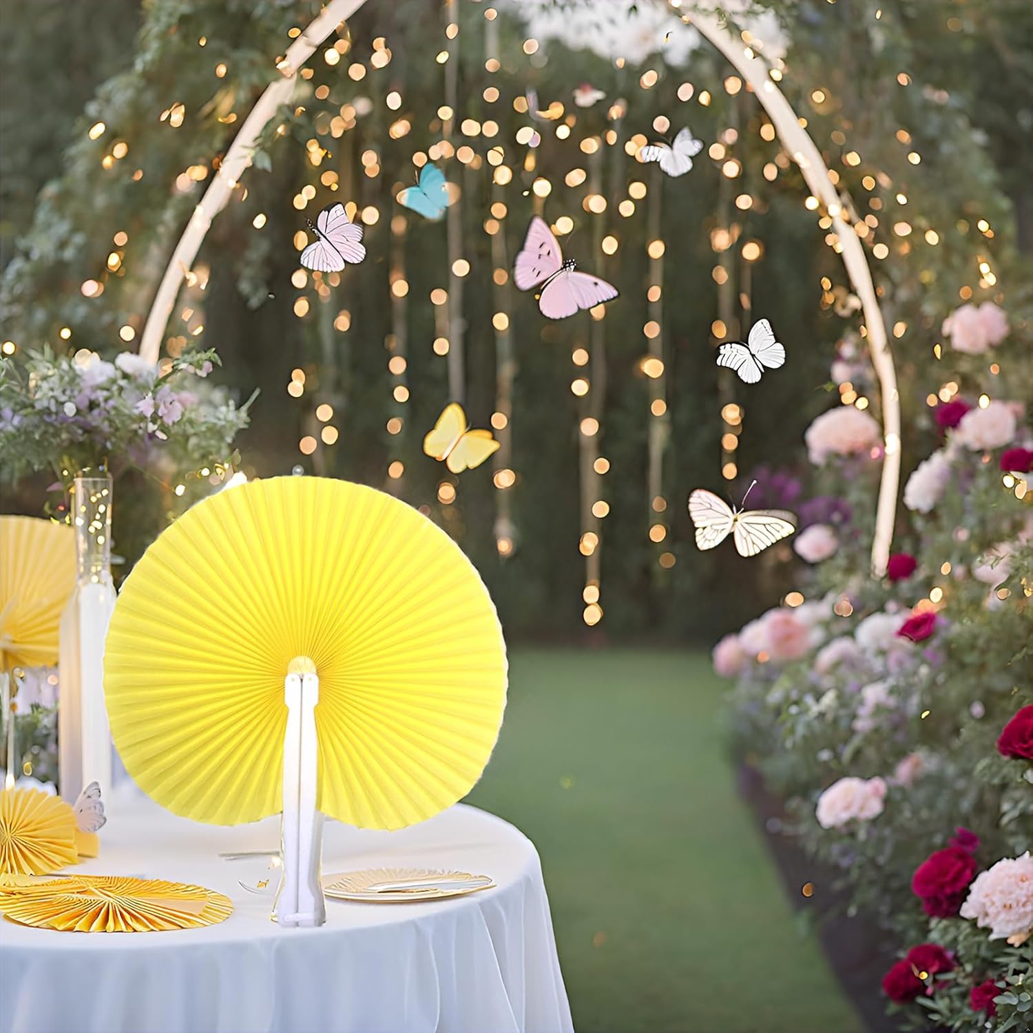 • THE PAPER FANS PACKAGE:·Your package will includes 12 pieces counts of round accordion folding yellow paper fans.In total 12 PCS.Package weight 0.45 lb.