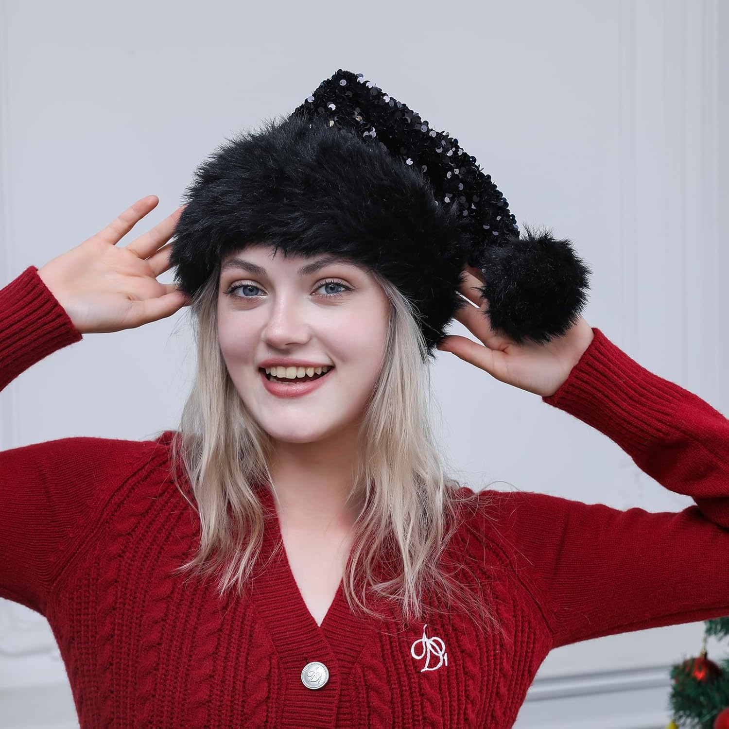 • FESTIVE DESIGN: Christmas hat with sequin design and brim faux rabbit fur,Xmas hats are suitable for holiday party favors on various occasions, Christmas, Halloween, New Year and shows etc.