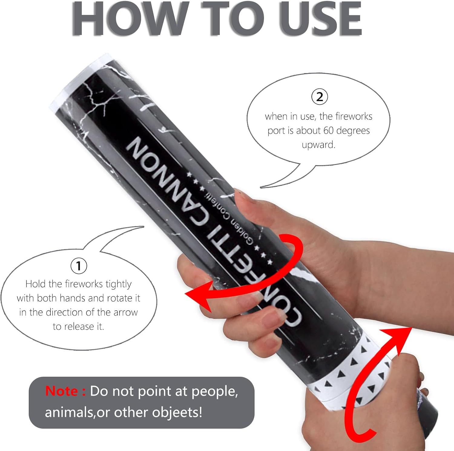 • 【Simple to Use】You just twist the bottom of the cannon with your hand and aim straight up, each party popper shoots confetti up to 15-20 feet in the air.