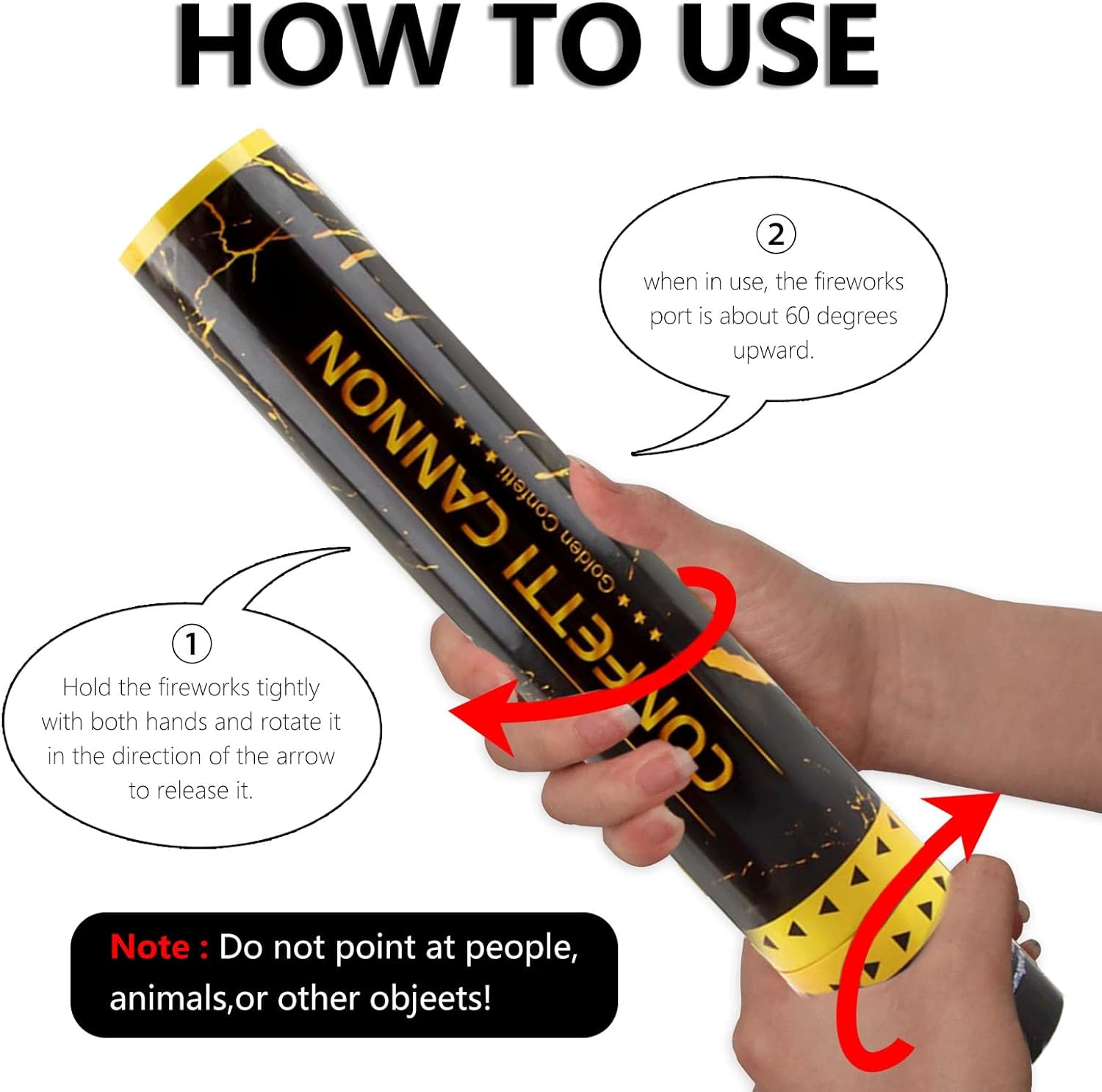 • 【Simple to Use】You just twist the bottom of the cannon with your hand and aim straight up, each party popper shoots confetti up to 15-20 feet in the air.