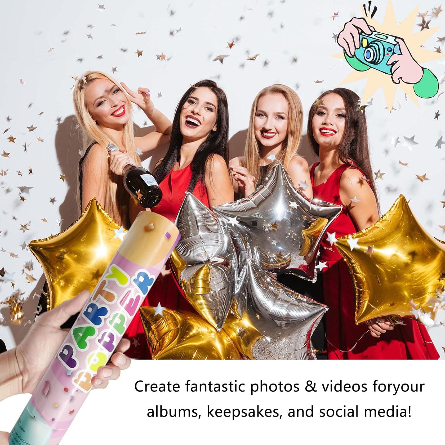 • 【Gold&Silver Star Confetti Cannon】Our gold&silver star confetti cannon releases gold&silver star confetti, immediately creating a party atmosphere. Whether you are celebrating a special occasion or just for fun, this star paper cannon will definitely bring smiles and laughter.