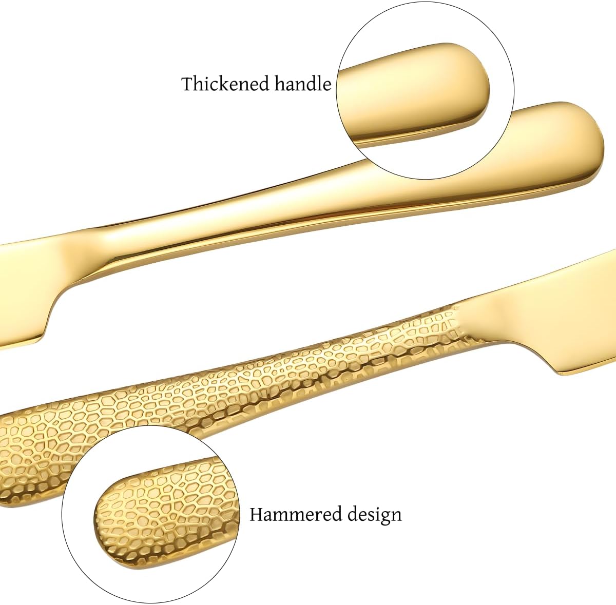 • 🍰DURABLE & DISHWASHER SAFE -- Please use neutral soap to clean the flatware. DO NOT use any strong chemicals such as baking soda, bleaching powder and sodium hypochlorite. DO NOT use wire brush to clean them for durability purpose